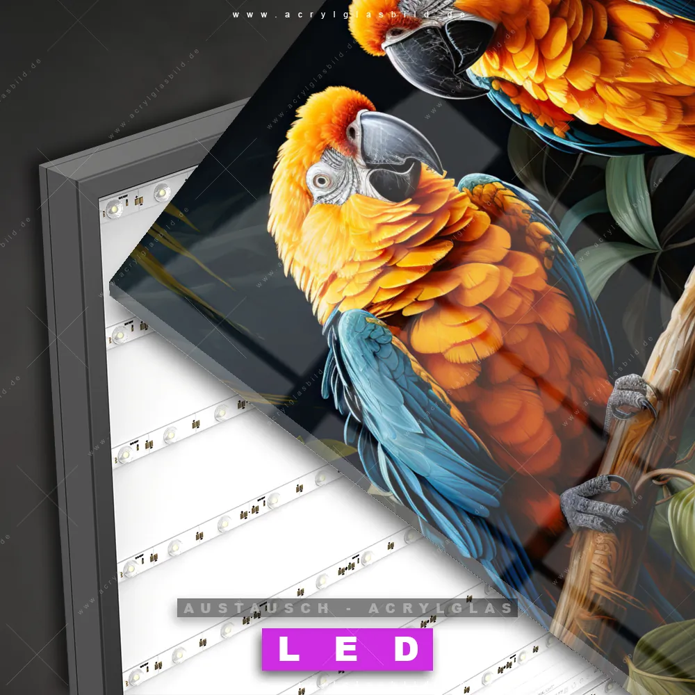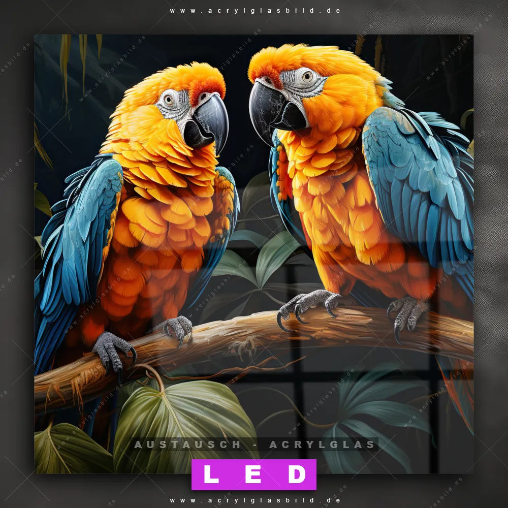 Wechsel-Acrylglas Canvalight® DIA | Papageien auf einem Ast | Quadrat