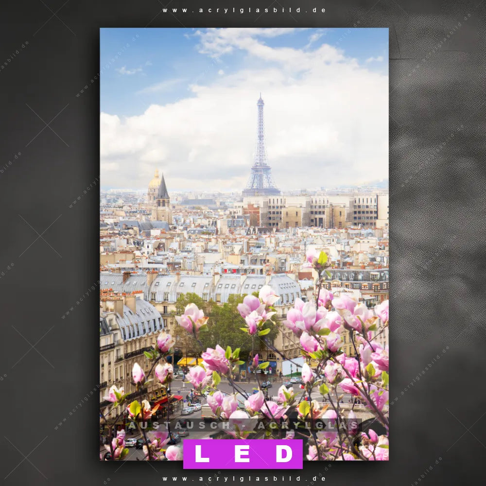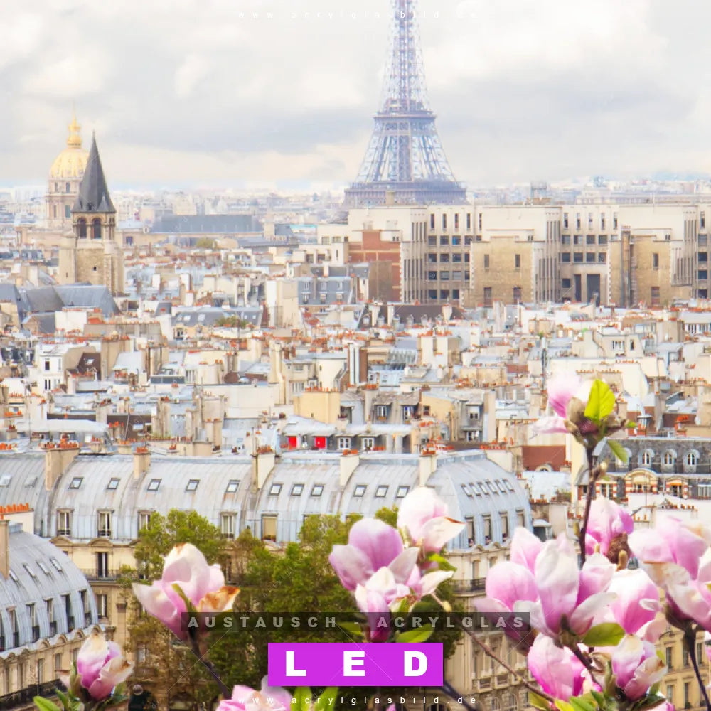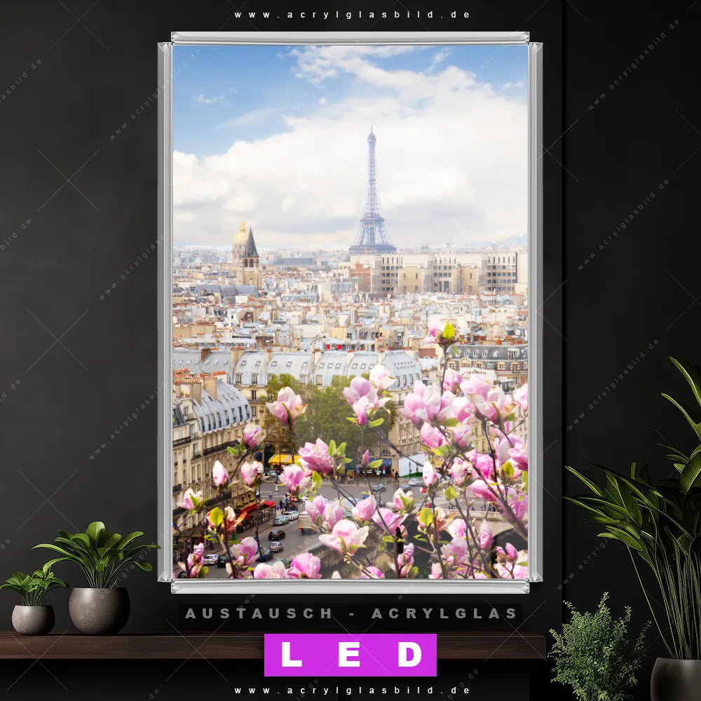 Begriffe wie Sehenswürdigkeiten, Frankreich, Paris, Eiffelturm, Skyline, Häuser, Frühling, Magnolie haben dich auf der Suche nach deinem neuen Austausch-Acrylglasbild inspiriert? Dann sollte das Wechsel-Acrylglasbild Magnolien in Paris für dein bereits vorhandenes LED Acrylglasbild Canvalight® DIA den Weg zu dir finden.