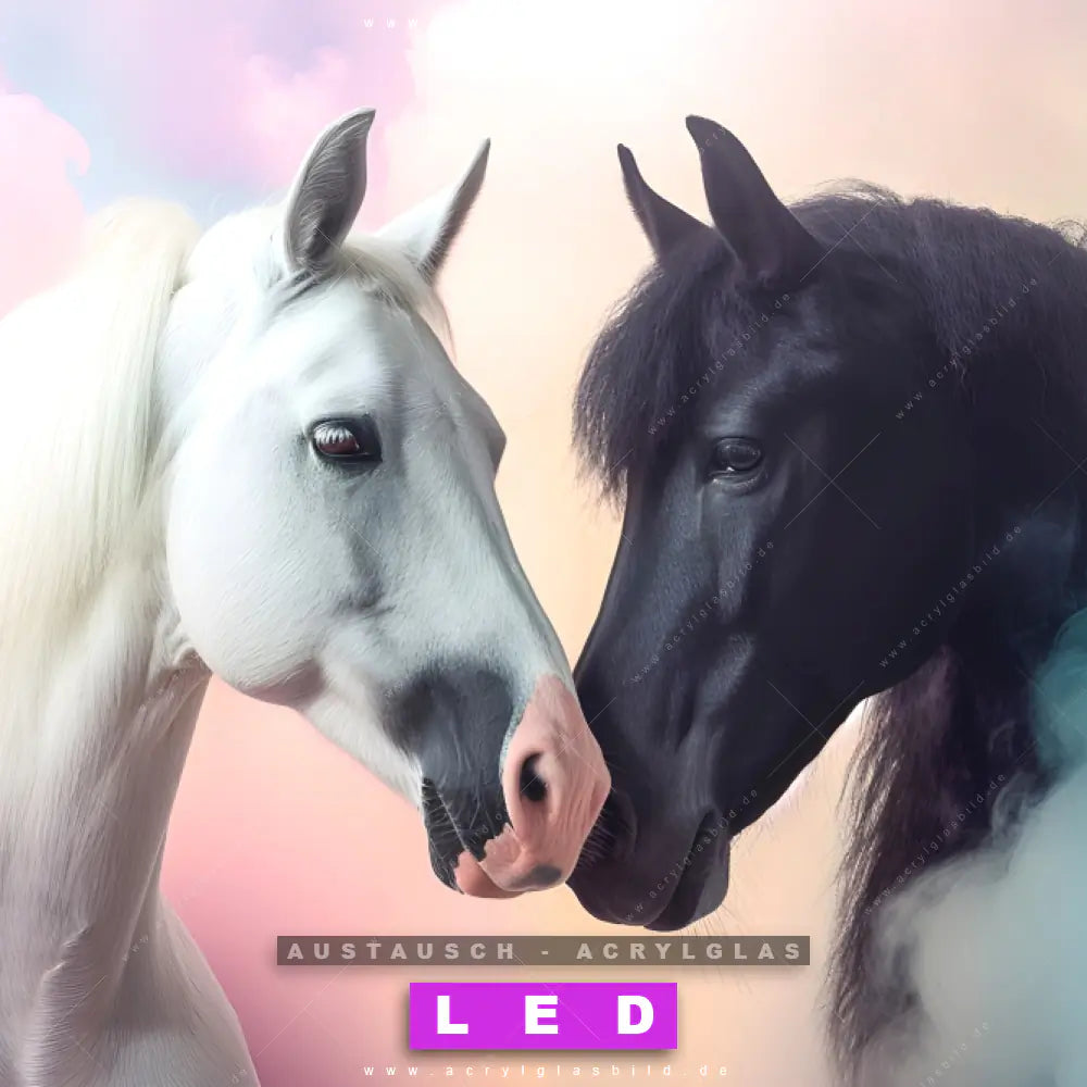Begriffe wie Hengst, Stute, Pony, Pferde, Wolken, Nebel, Farbnebel, Ross haben dich auf der Suche nach deinem neuen Austausch-Acrylglasbild inspiriert? Dann sollte das Wechsel-Acrylglasbild Zwei Pferde in Wolken für dein bereits vorhandenes LED Acrylglasbild Canvalight® DIA den Weg zu dir finden.