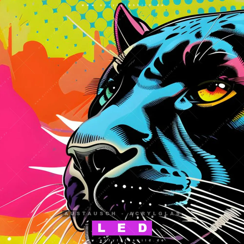 Begriffe wie Panther, Raubkatze, Wildkatze, Nahaufnahme haben dich auf der Suche nach deinem neuen Austausch-Acrylglasbild inspiriert? Dann sollte das Wechsel-Acrylglasbild Farbenfrohe Wildkatze für dein bereits vorhandenes LED Acrylglasbild Canvalight® DIA den Weg zu dir finden.