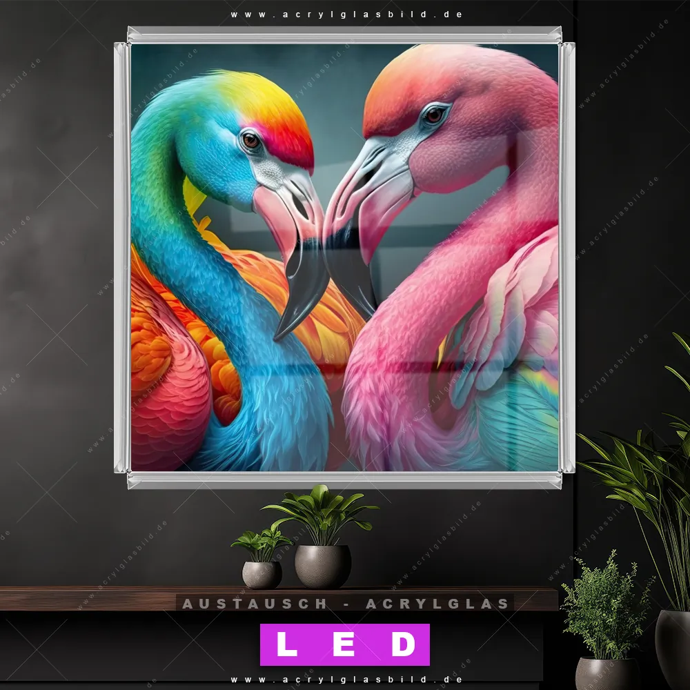 Wechsel-Acrylglas Canvalight® DIA | Romantische Flamingos | Quadrat