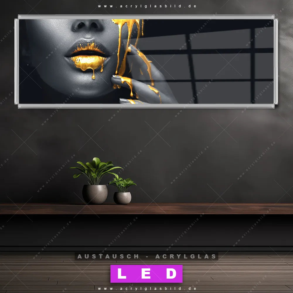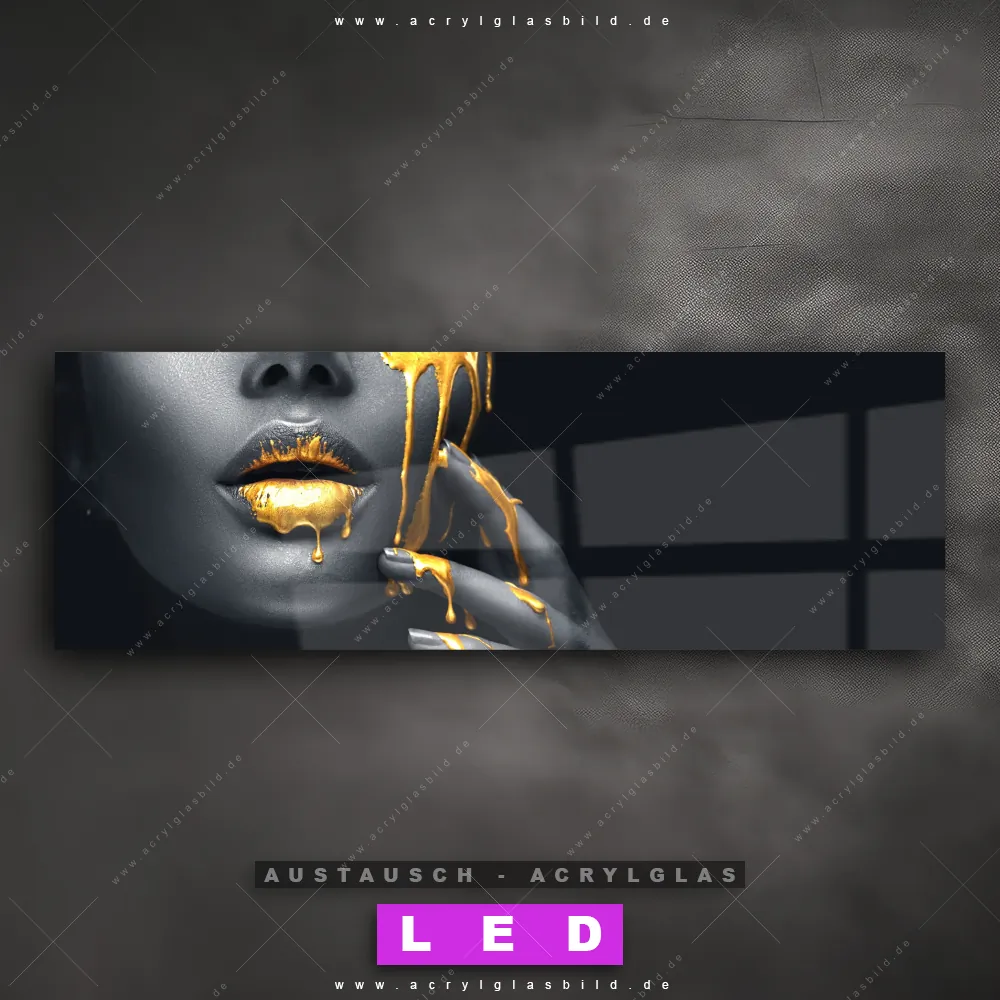 Begriffe wie Frau, Lippen, Mund, Porträt, Erotik, modern, Gold, Silber, Farbe, Beauty haben dich auf der Suche nach deinem neuen Austausch-Acrylglasbild inspiriert? Dann sollte das Wechsel-Acrylglasbild Gesicht einer Frau in Silber & Gold für dein bereits vorhandenes LED Acrylglasbild Canvalight® DIA den Weg zu dir finden.