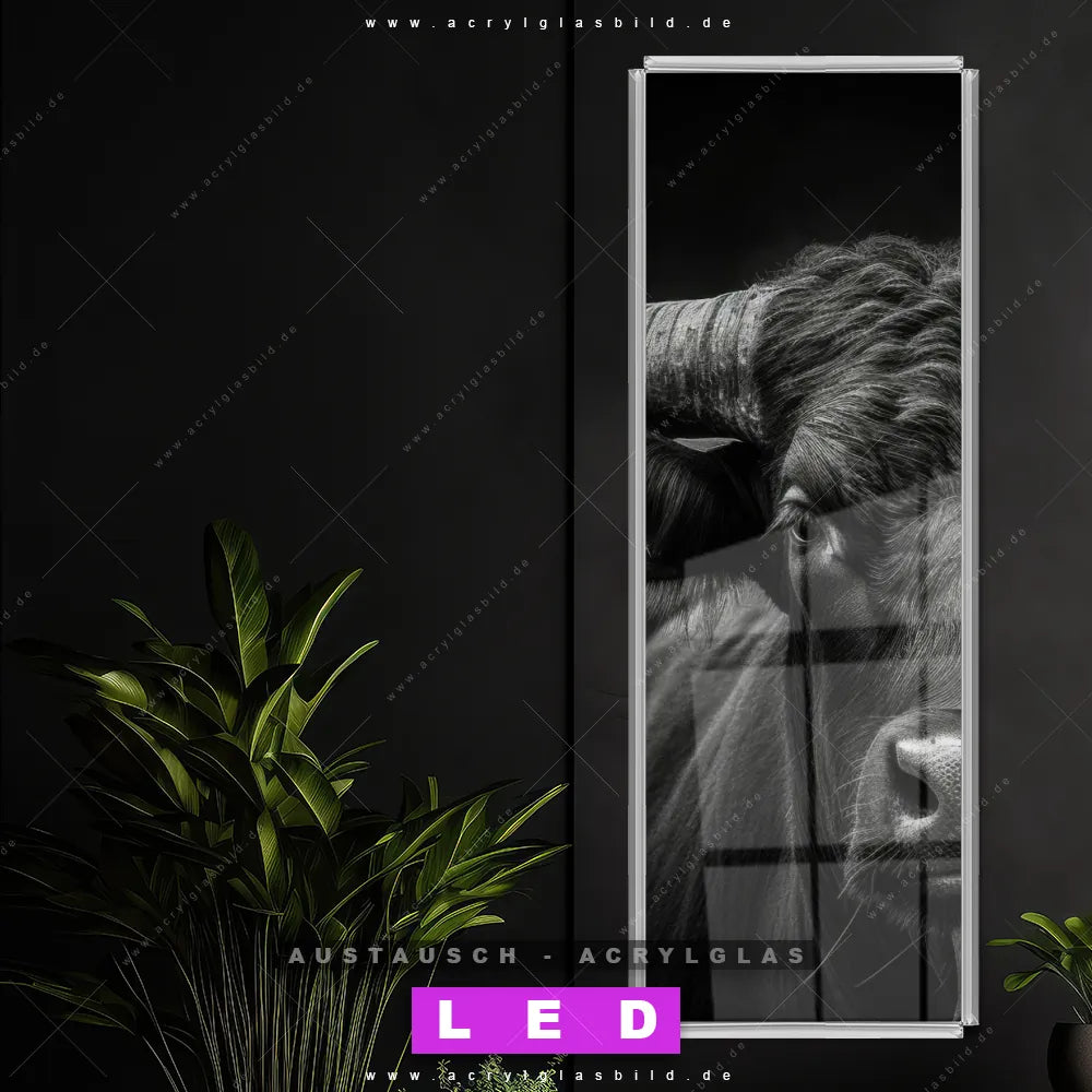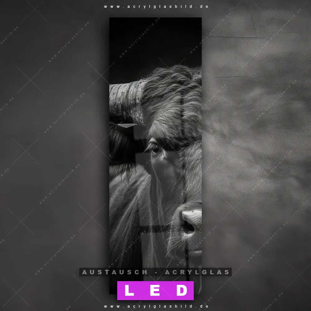 Begriffe wie Hochlandrind, Rind, Stier, Hörner, Porträt haben dich auf der Suche nach deinem neuen Austausch-Acrylglasbild inspiriert? Dann sollte das Wechsel-Acrylglasbild Stier mit Hörnern für dein bereits vorhandenes LED Acrylglasbild Canvalight® DIA den Weg zu dir finden.