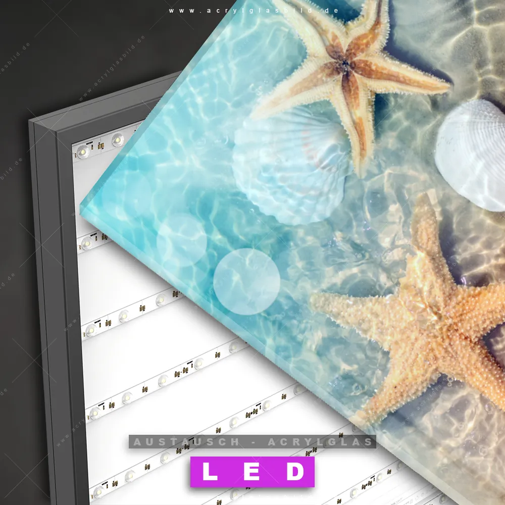 Wechsel-Acrylglas Canvalight® DIA | Seesterne & Muscheln | Hochformat