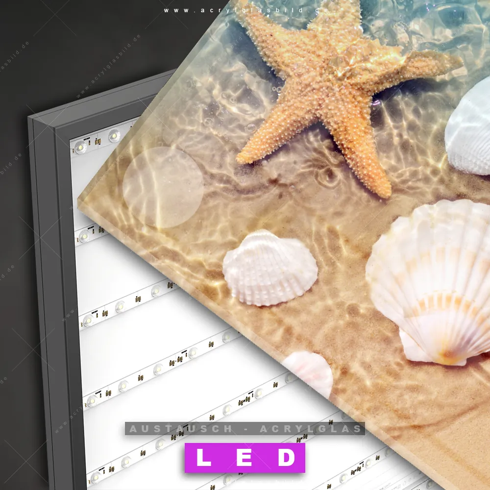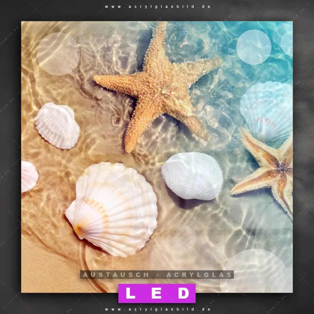 Wechsel-Acrylglas Canvalight® DIA | Seesterne & Muscheln | Quadrat