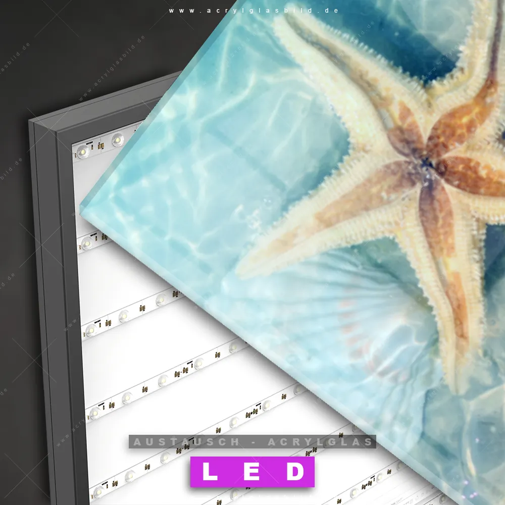Wechsel-Acrylglas Canvalight® DIA | Seesterne & Muscheln | Schmal