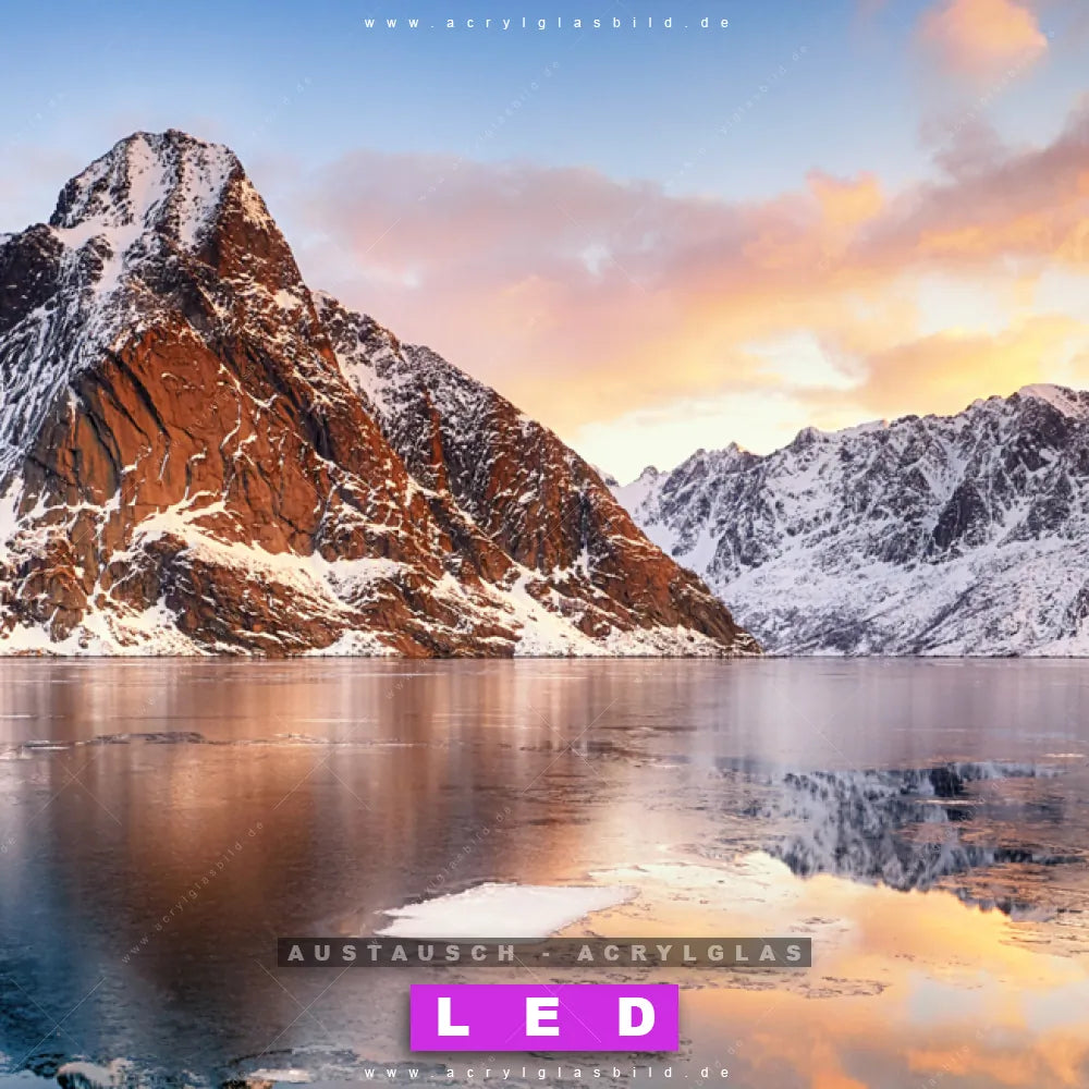 Begriffe wie Landschaft, Natur, Stille, See, Wasser, Berge, Gebirge, Polarlicht, Norwegen, Island, Skandinavien, Schweden, Finnland, Spiegelung haben dich auf der Suche nach deinem neuen Austausch-Acrylglasbild inspiriert? Dann sollte das Wechsel-Acrylglasbild Winterlandschaft für dein bereits vorhandenes LED Acrylglasbild Canvalight® DIA den Weg zu dir finden.
