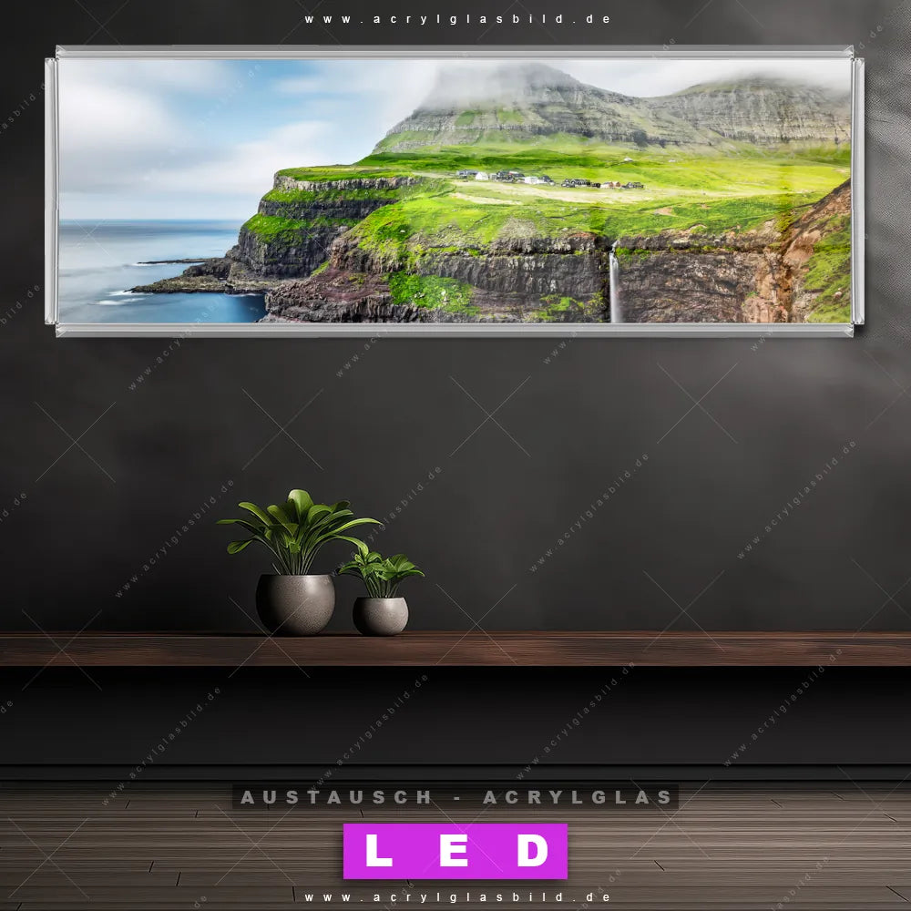 Begriffe wie Landschaft, Natur, Wasserfall, Island, Küste, Steilküste, Meer, Ozean, Skandinavien, Insel haben dich auf der Suche nach deinem neuen Austausch-Acrylglasbild inspiriert? Dann sollte das Wechsel-Acrylglasbild Klippen für dein bereits vorhandenes LED Acrylglasbild Canvalight® DIA den Weg zu dir finden.