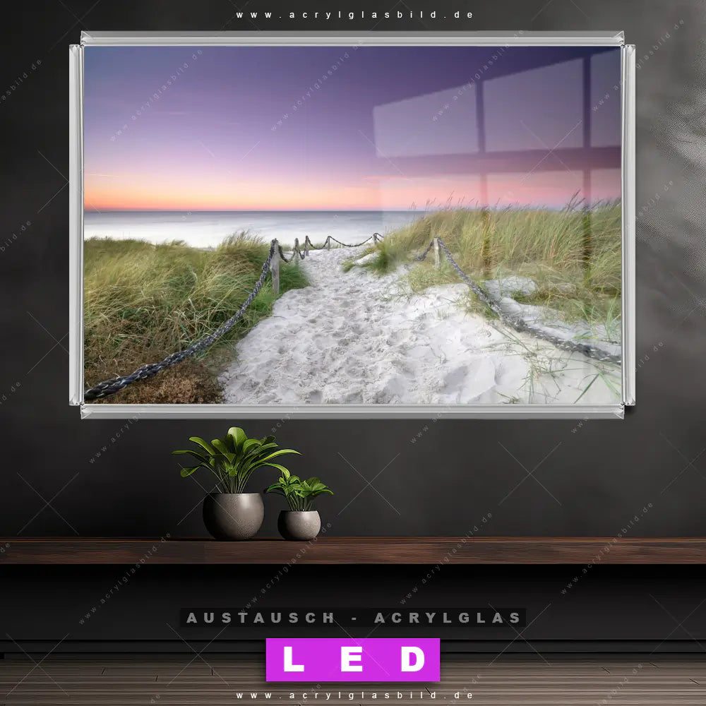 Wechsel-Acrylglas Canvalight® DIA | Strandweg im Sonnenuntergang | Querformat