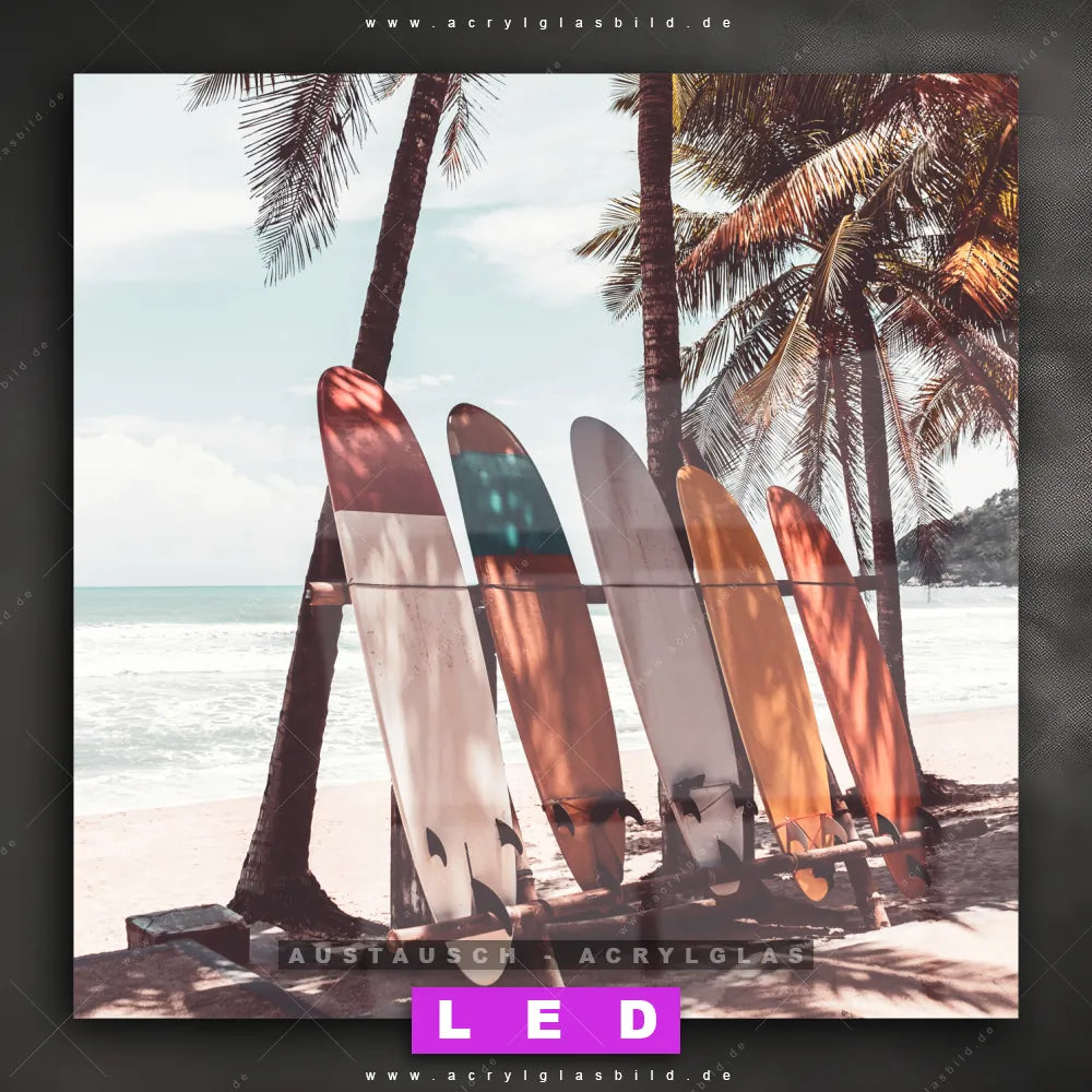 Wechsel-Acrylglas Canvalight® DIA | Surfbretter und Palmen | Quadrat