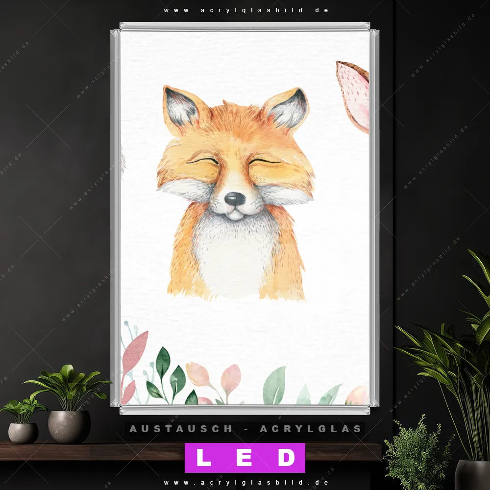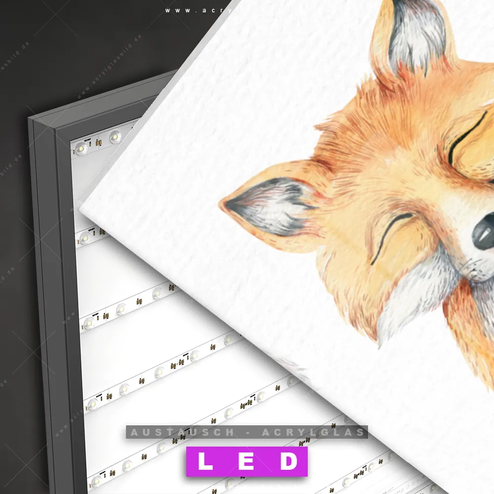 Begriffe wie Kinder, Tiere, Kunst, Freunde, Nachtlicht, träumen, Fuchs, Reh, Eule, Waldtiere, Wald haben dich auf der Suche nach deinem neuen Austausch-Acrylglasbild inspiriert? Dann sollte das Wechsel-Acrylglasbild Wildtiere für dein bereits vorhandenes LED Acrylglasbild Canvalight® DIA den Weg zu dir finden.