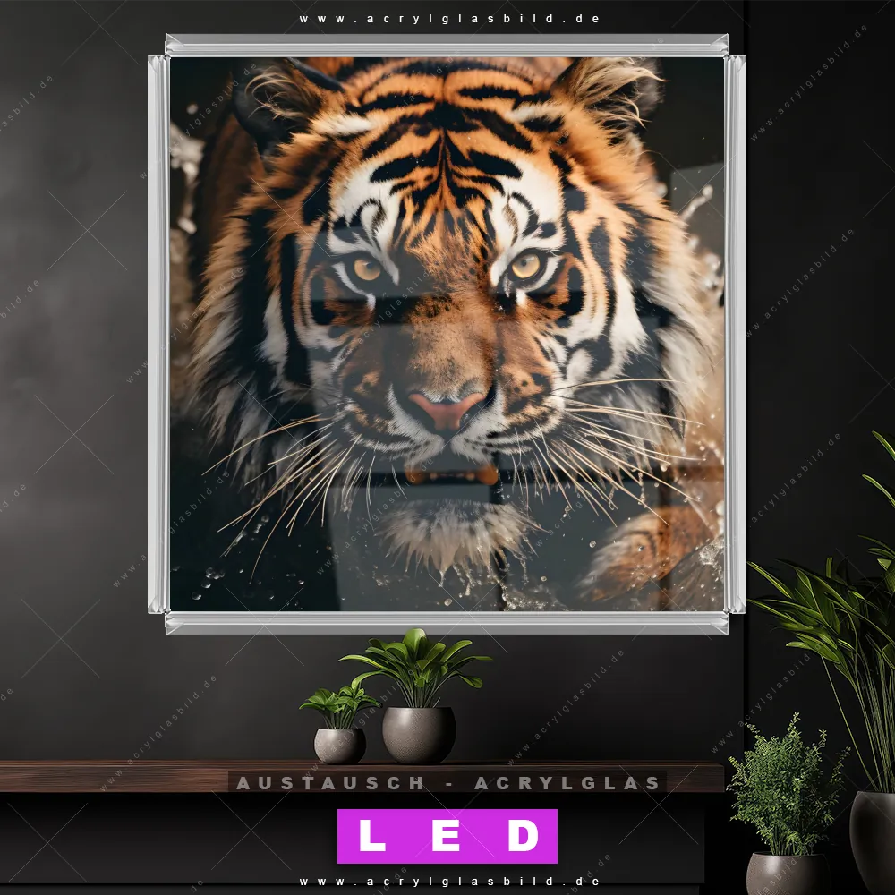 Wechsel-Acrylglas Canvalight® DIA | Tiger im Wasser | Quadrat