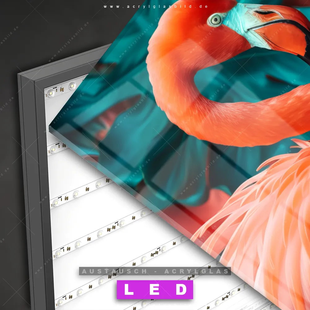 Wechsel-Acrylglas Canvalight® DIA | Tropischer Flamingo Traum | Hochformat