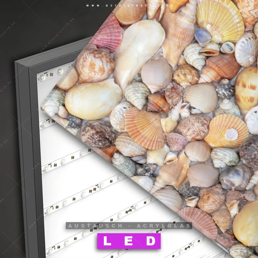 Wechsel-Acrylglas Canvalight® DIA | Viele Muscheln | Querformat