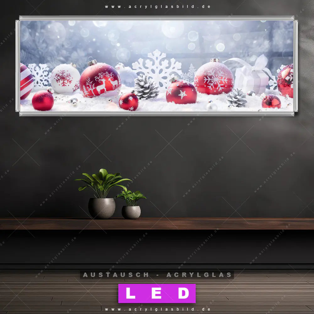 Wechsel-Acrylglas Canvalight® DIA | Weihnachtskugeln im Winterwunderland | Panorama