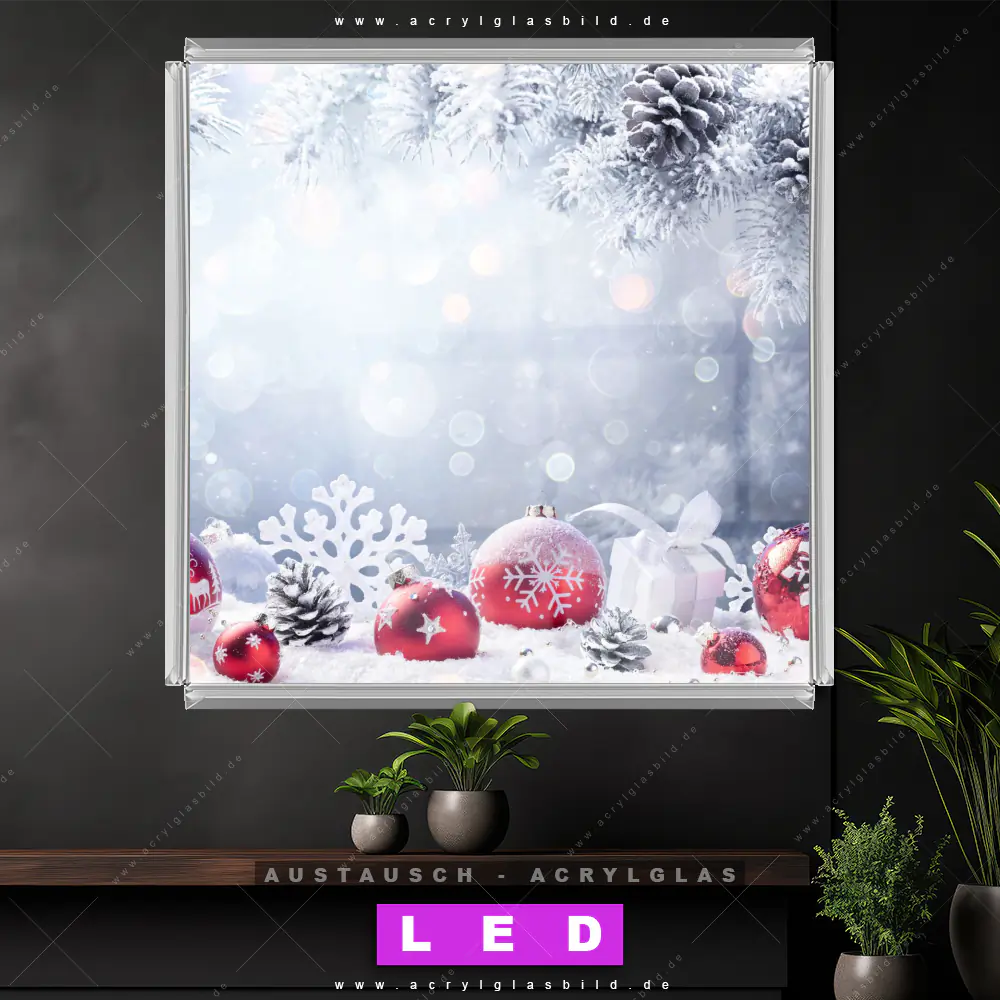 Wechsel-Acrylglas Canvalight® DIA | Weihnachtskugeln im Winterwunderland | Quadrat