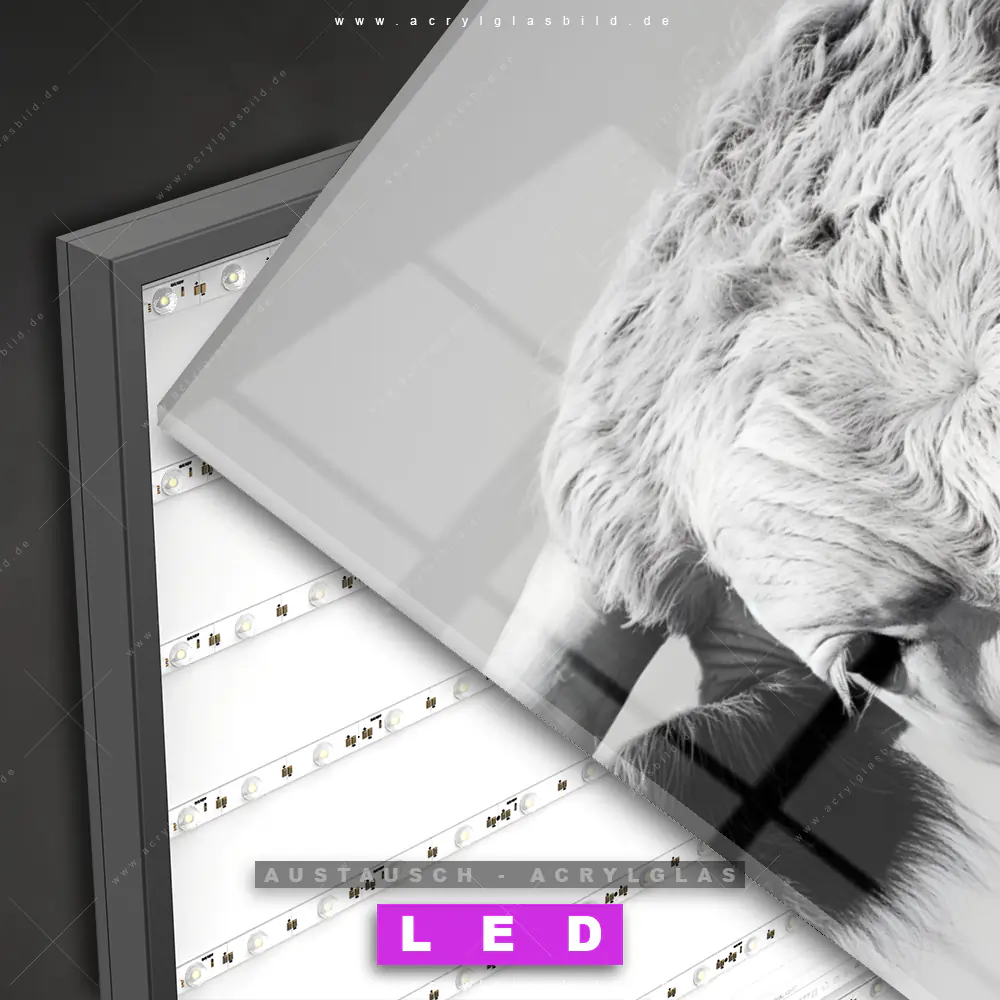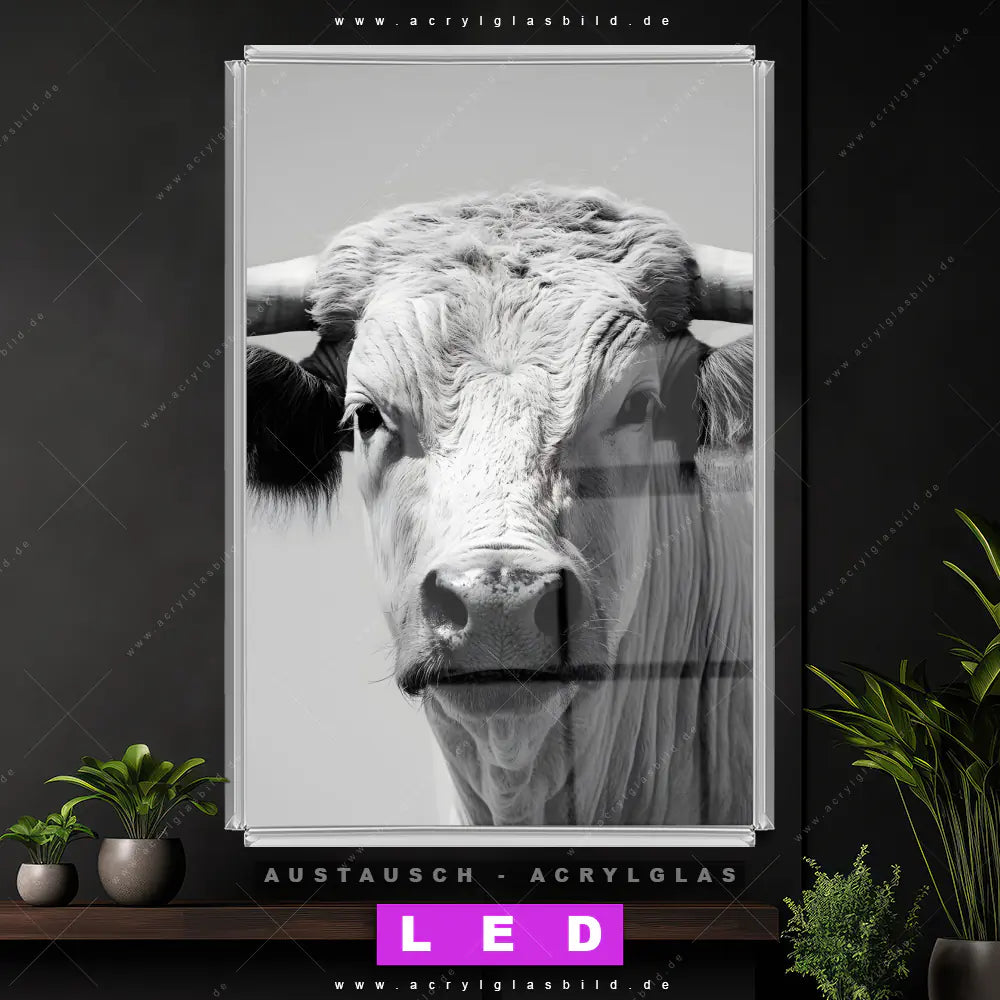 Begriffe wie Tier, Stier, Hochlandkuh, Highlander, Büffel, Rind, Bulle, Hochlandrind, Kuh, Ochse haben dich auf der Suche nach deinem neuen Austausch-Acrylglasbild inspiriert? Dann sollte das Wechsel-Acrylglasbild Rind in Grautönen für dein bereits vorhandenes LED Acrylglasbild Canvalight® DIA den Weg zu dir finden.