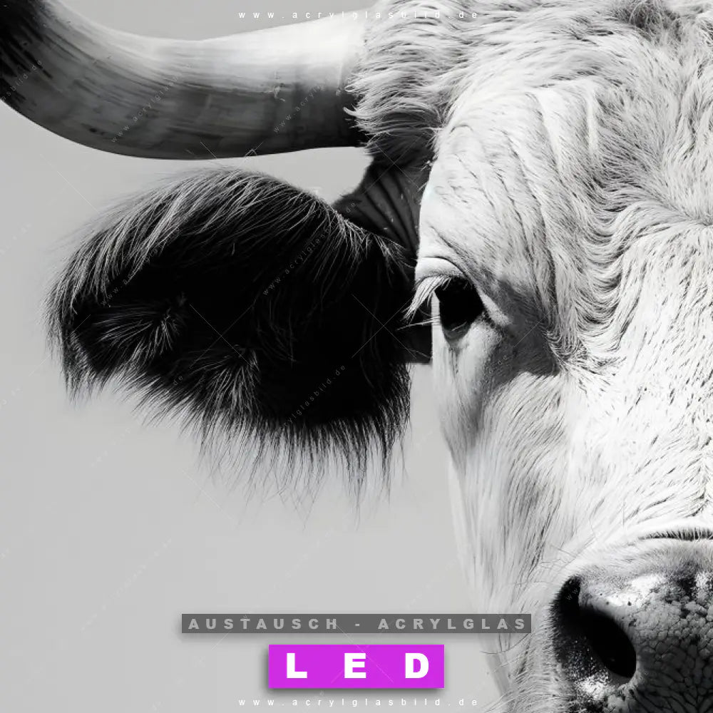 Begriffe wie Tier, Stier, Hochlandkuh, Highlander, Büffel, Rind, Bulle, Hochlandrind, Kuh, Ochse haben dich auf der Suche nach deinem neuen Austausch-Acrylglasbild inspiriert? Dann sollte das Wechsel-Acrylglasbild Rind in Grautönen für dein bereits vorhandenes LED Acrylglasbild Canvalight® DIA den Weg zu dir finden.