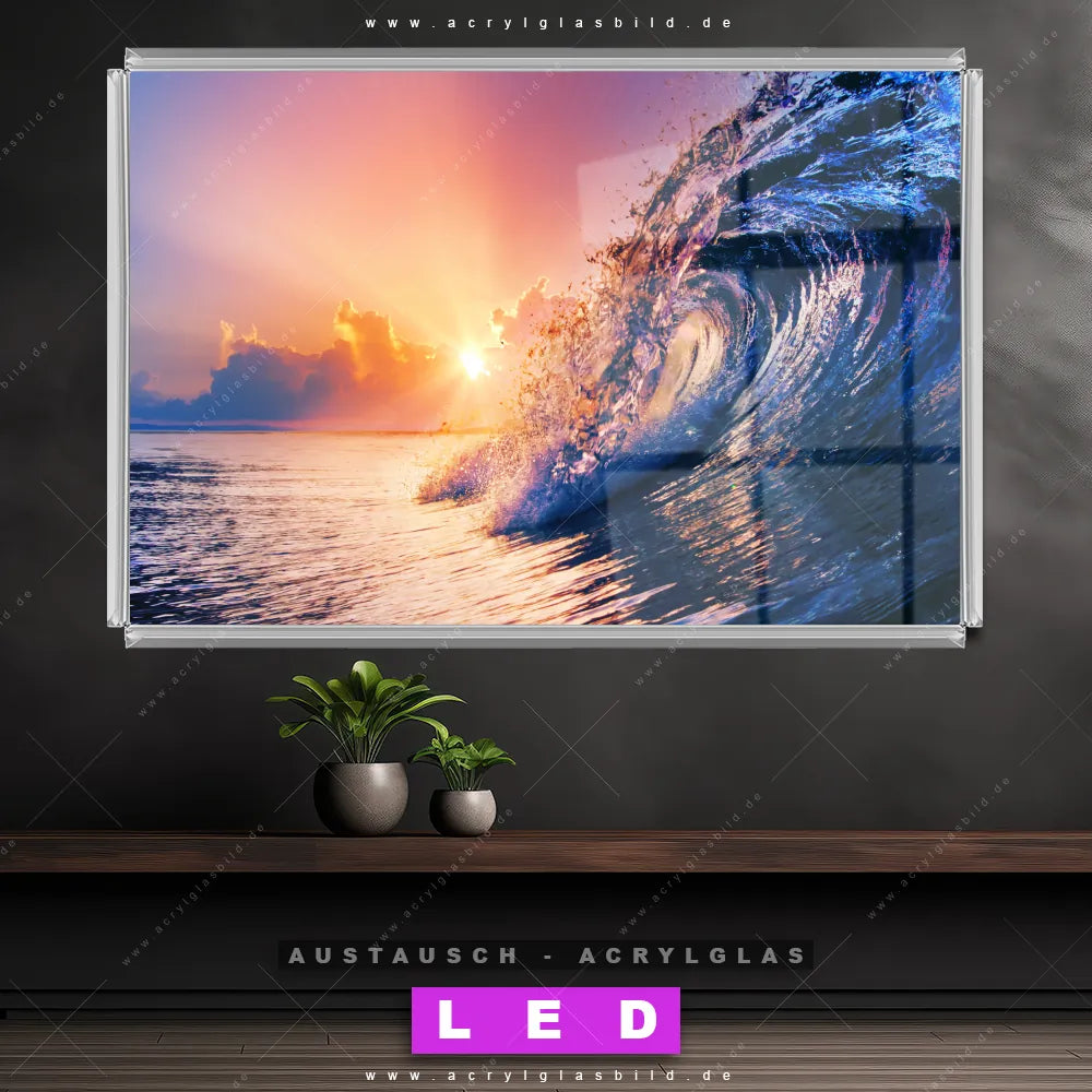 Wechsel-Acrylglas Canvalight® DIA | Welle im Sonnenuntergang | Querformat