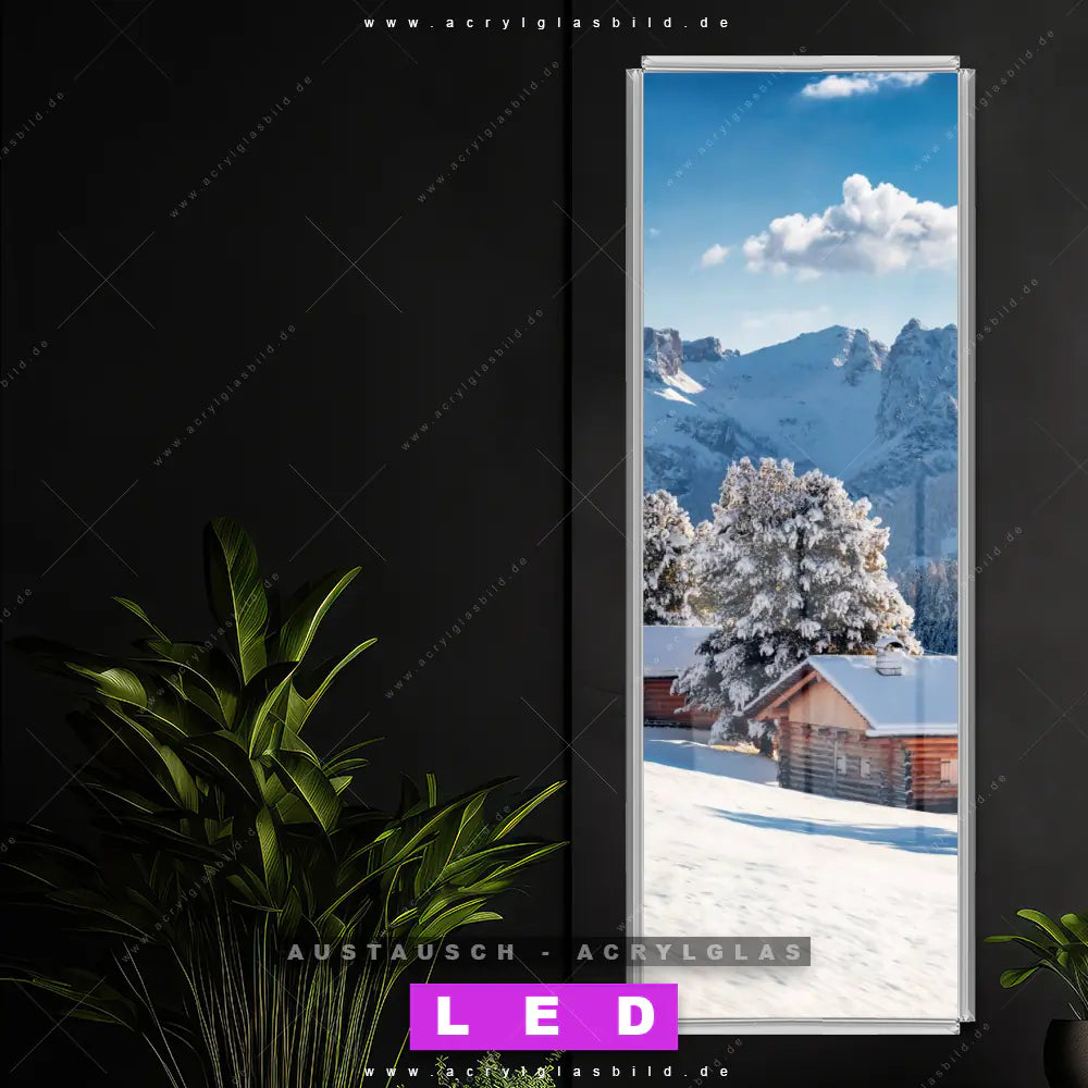 Wechsel-Acrylglas Canvalight® DIA | Winteridylle in den Bergen | Schmal