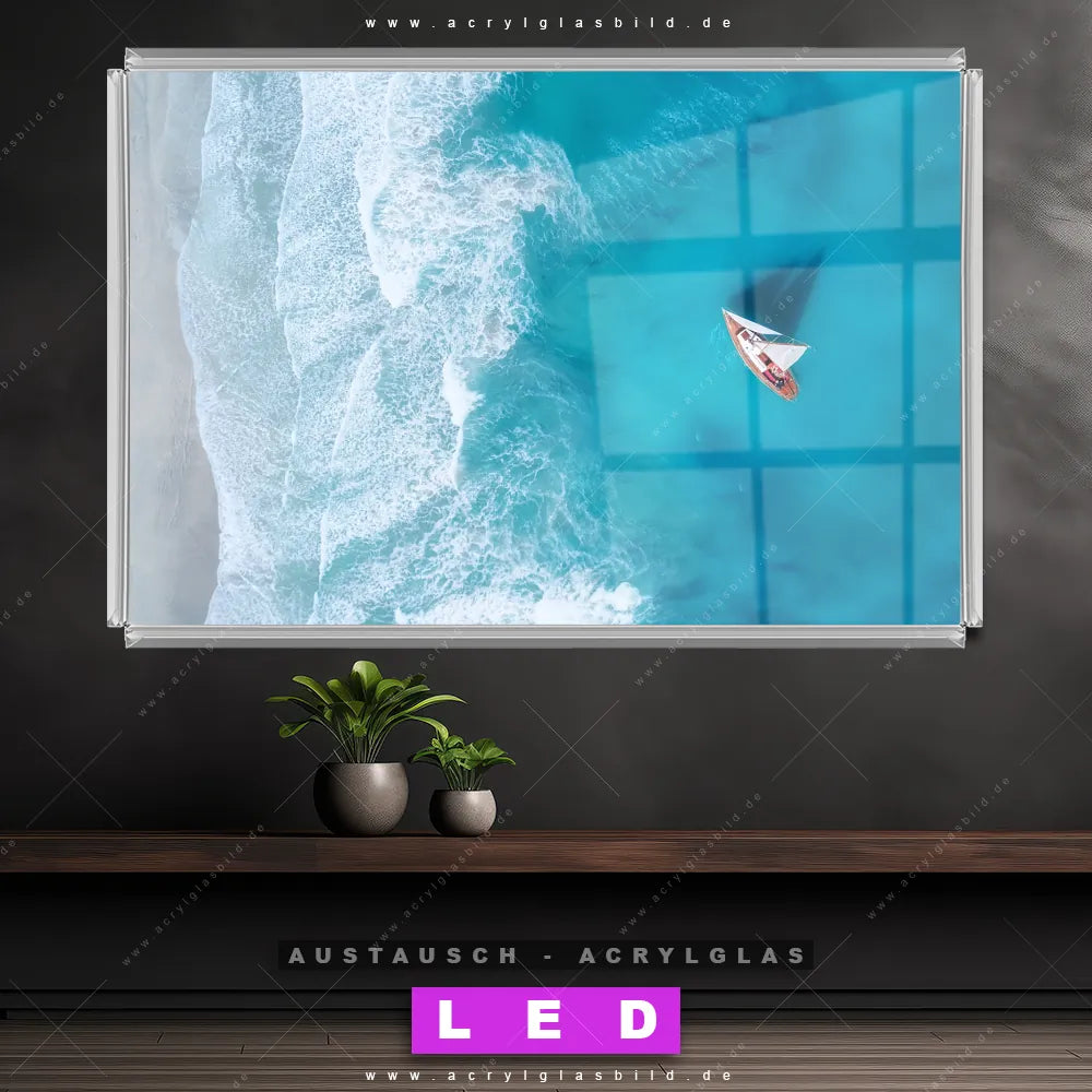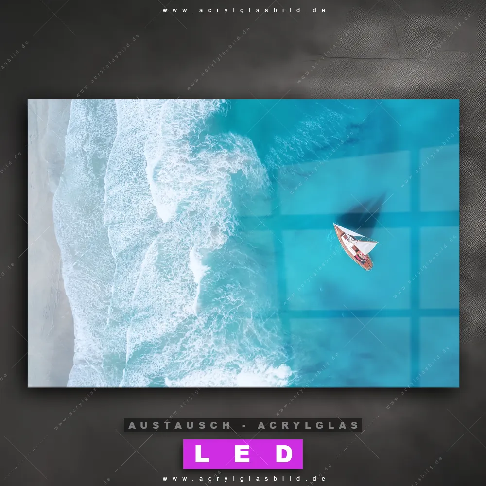 Begriffe wie Ozean, Wasser, Küste, Boot, Yacht, Sturm, Sommer, Südsee - Karibik, Urlaub - Reisen, Wellen -Surfen haben dich auf der Suche nach deinem neuen Austausch-Acrylglasbild inspiriert? Dann sollte das Wechsel-Acrylglasbild Segelboot im Meer für dein bereits vorhandenes LED Acrylglasbild Canvalight® DIA den Weg zu dir finden.