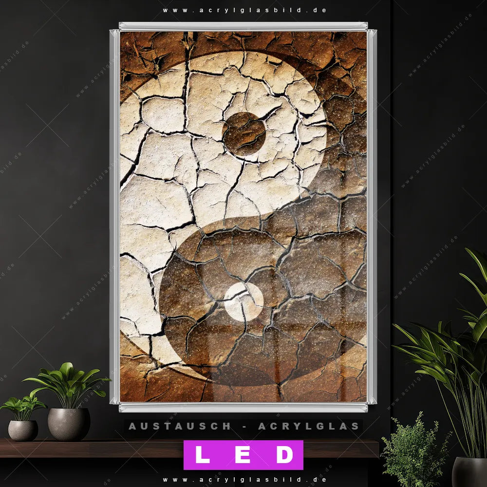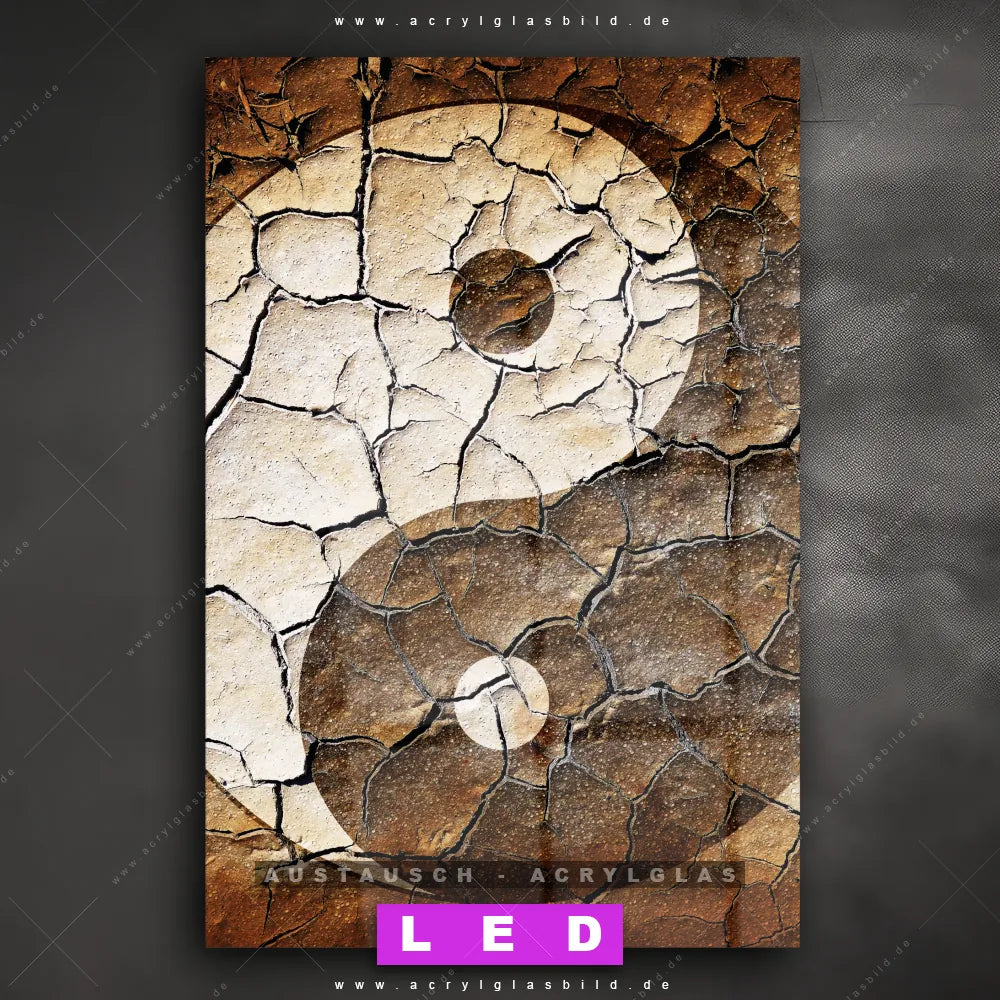 Wechsel-Acrylglas Canvalight® DIA | Yin Yang auf rissiger Erde | Hochformat