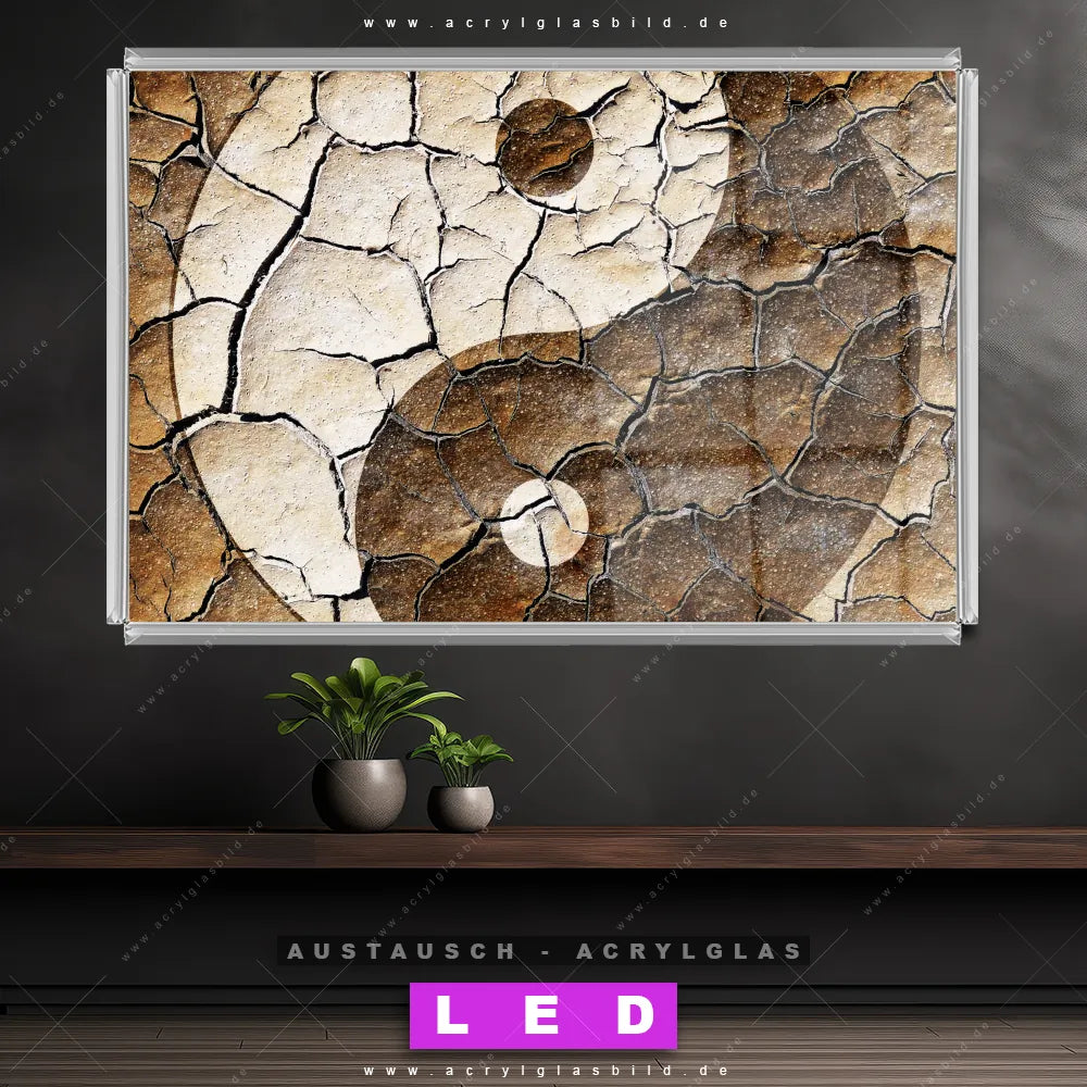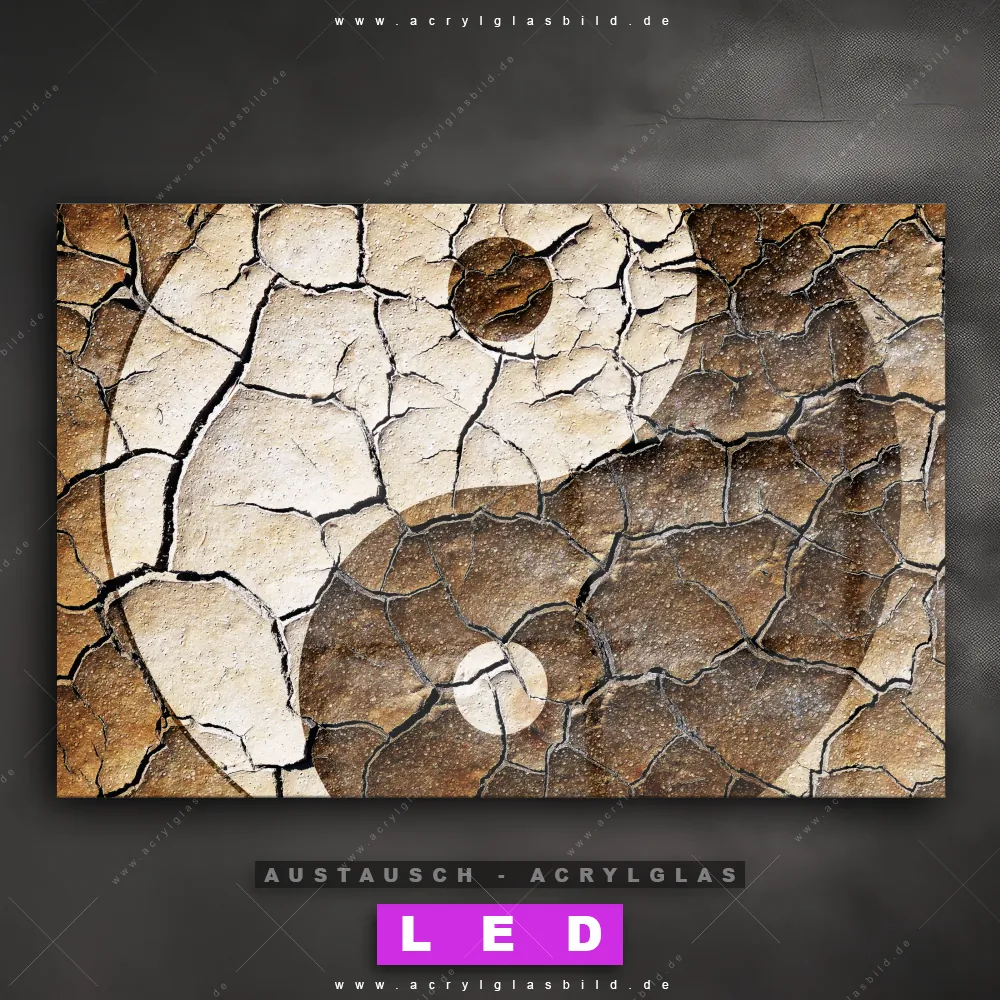 Wechsel-Acrylglas Canvalight® DIA | Yin Yang auf rissiger Erde | Querformat