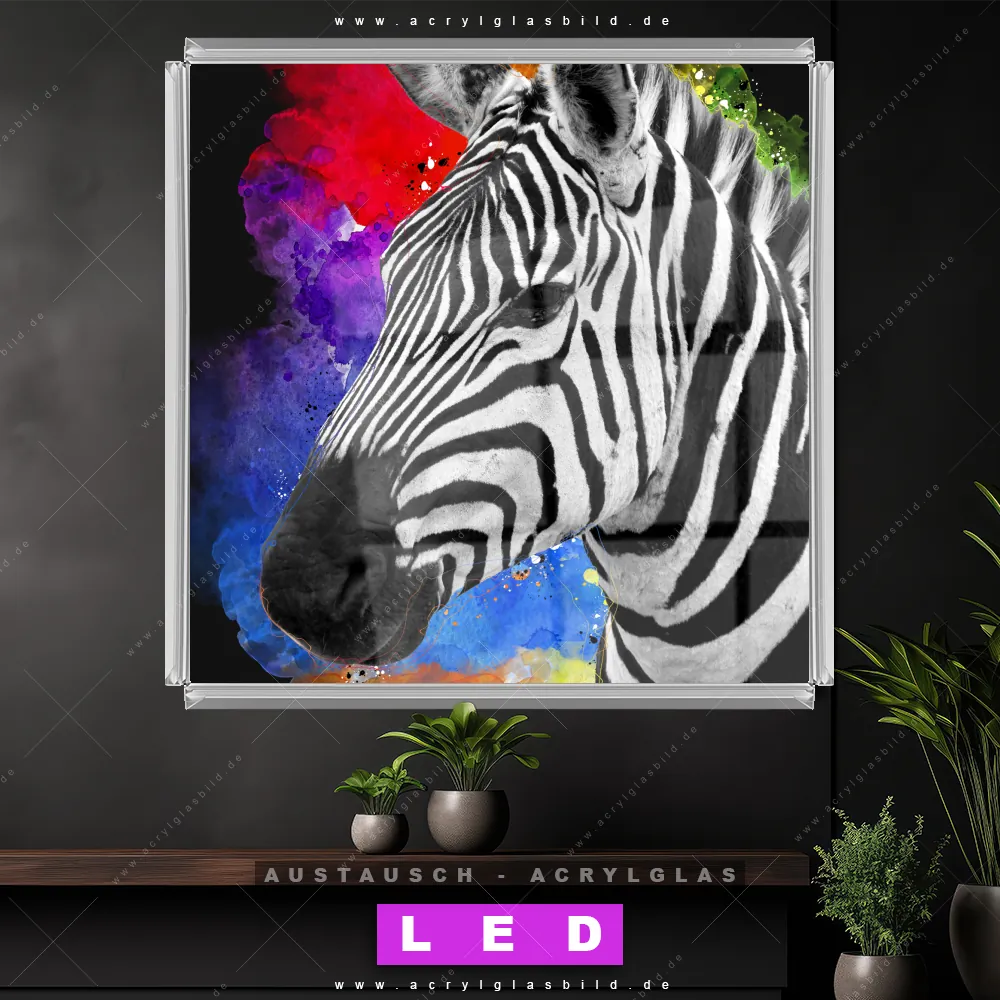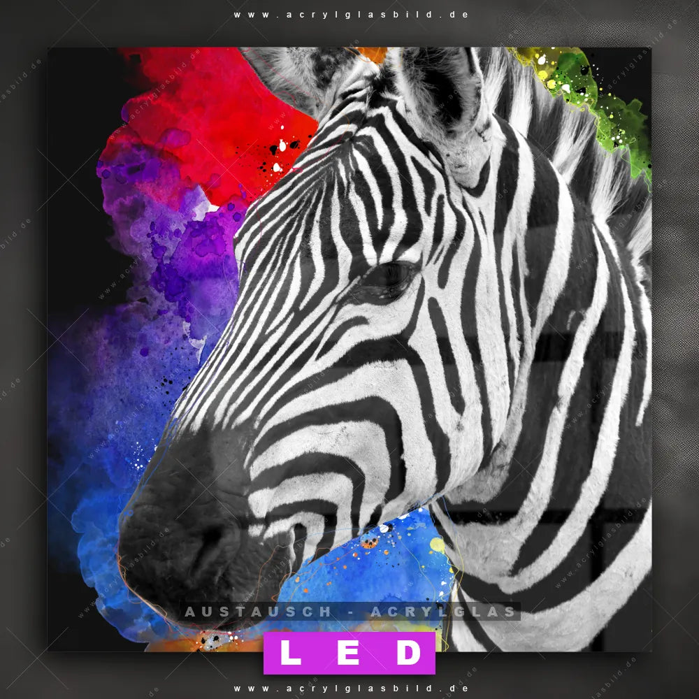 Begriffe wie Pop Art, Kunst, bunt, Tier, Afrika, Zebra, wild, Safari haben dich auf der Suche nach deinem neuen Austausch-Acrylglasbild inspiriert? Dann sollte das Wechsel-Acrylglasbild Farbenfrohes Zebra für dein bereits vorhandenes LED Acrylglasbild Canvalight® DIA den Weg zu dir finden.
