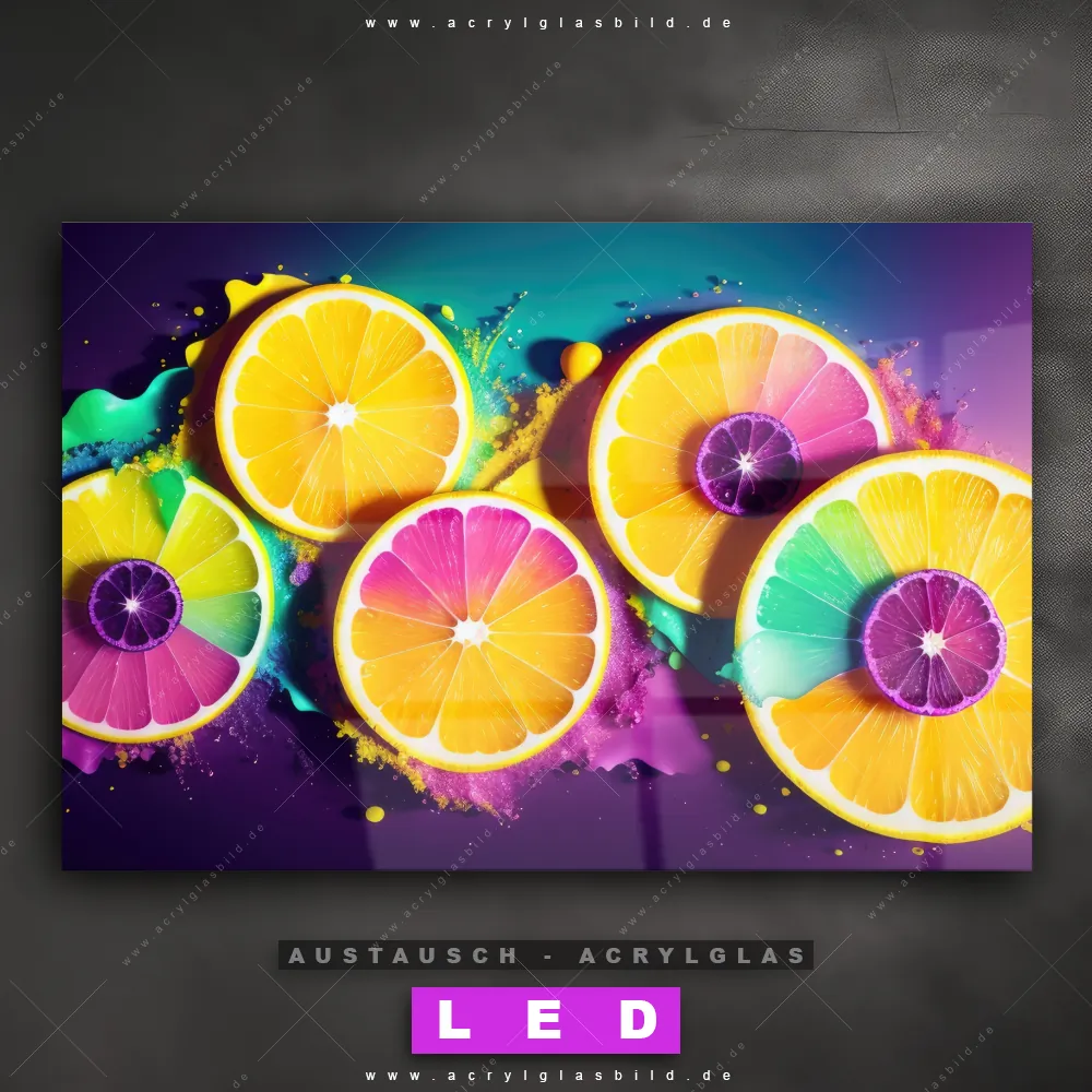 Begriffe wie Obst, Zitrusfrüchte, Früchte, frisch, spritzig, Spritzwasser, Spritzer, Tropfen, Zitrone, Farbe, Farbspritzer haben dich auf der Suche nach deinem neuen Austausch-Acrylglasbild inspiriert? Dann sollte das Wechsel-Acrylglasbild Neon Zitrusfrüchte für dein bereits vorhandenes LED Acrylglasbild Canvalight® DIA den Weg zu dir finden.