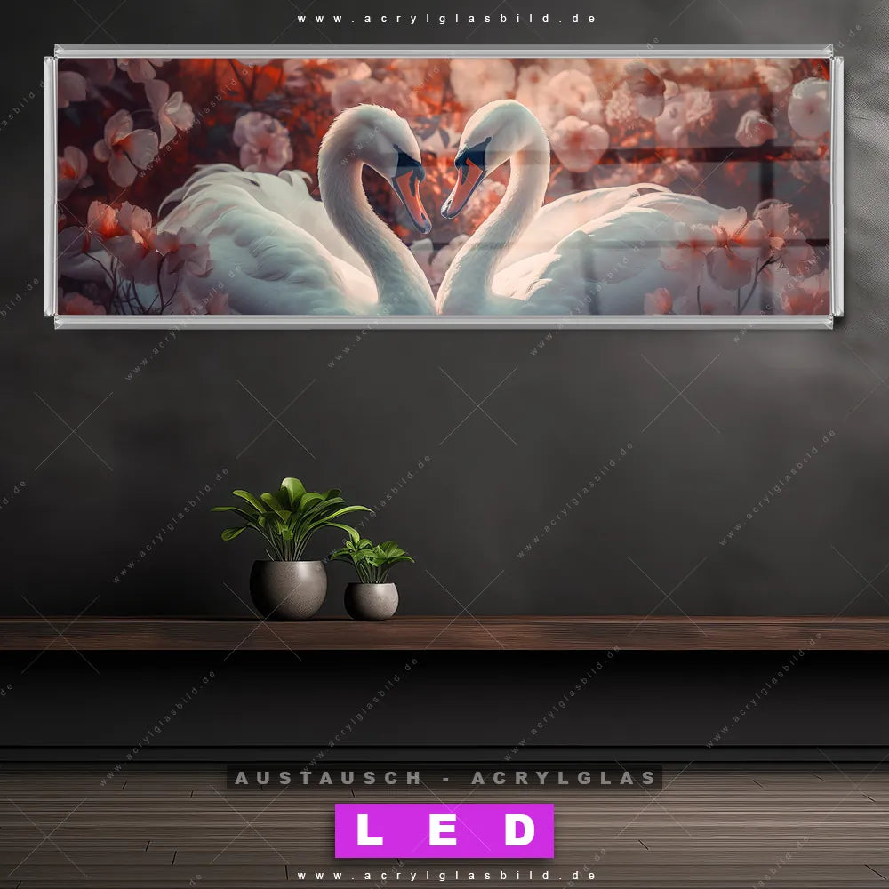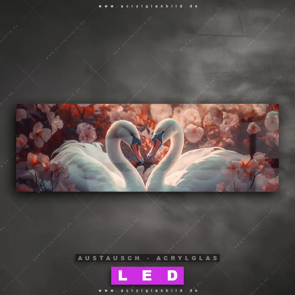 Begriffe wie Vogel, Schwan, Wasser, Liebe, Blumen, See haben dich auf der Suche nach deinem neuen Austausch-Acrylglasbild inspiriert? Dann sollte das Wechsel-Acrylglasbild Schwäne im Blumenmeer für dein bereits vorhandenes LED Acrylglasbild Canvalight® DIA den Weg zu dir finden.