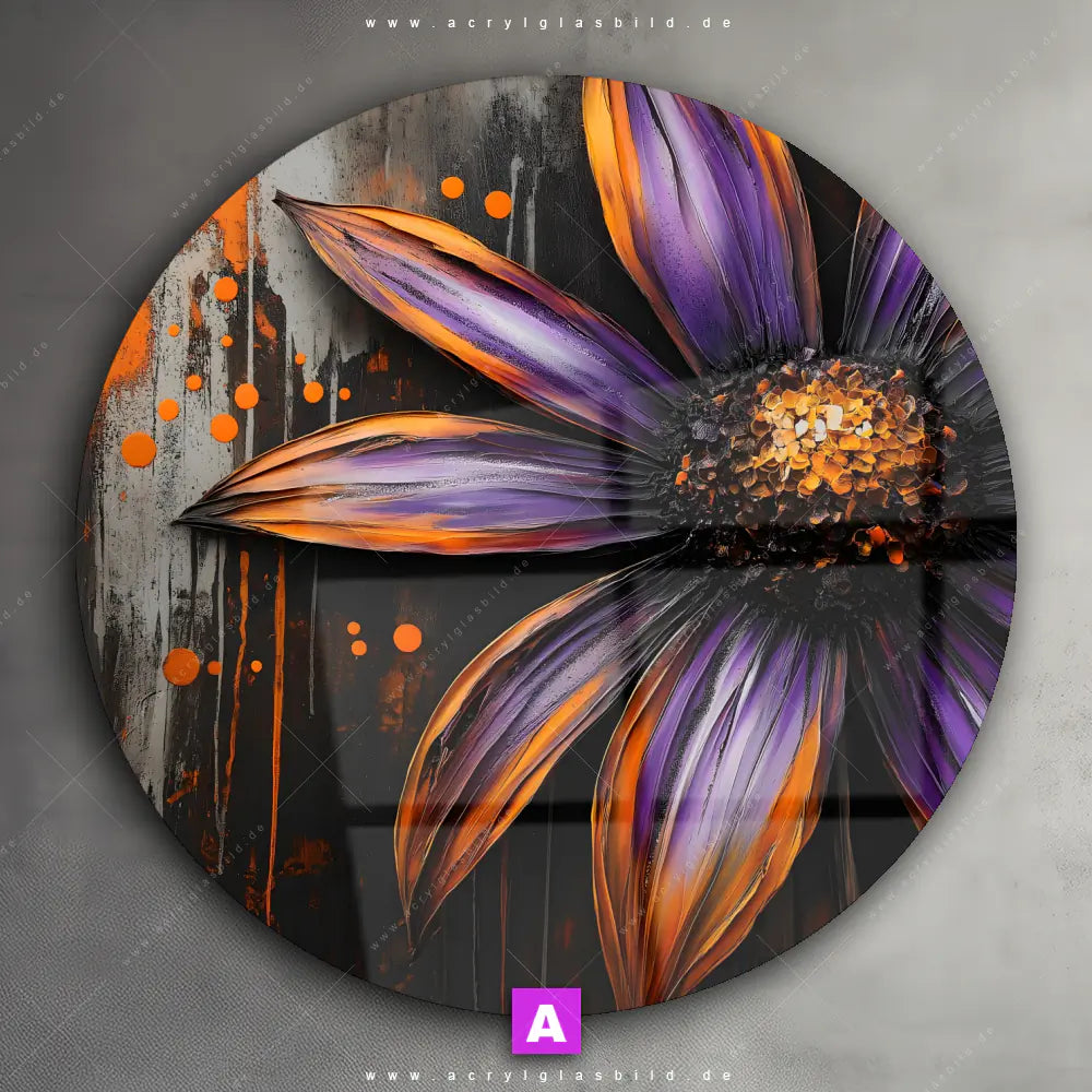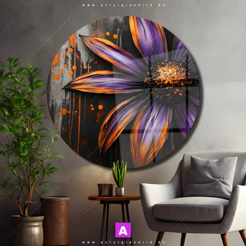 Acrylglasbild | Abstrakte Blume in Orange & Lila | Rund