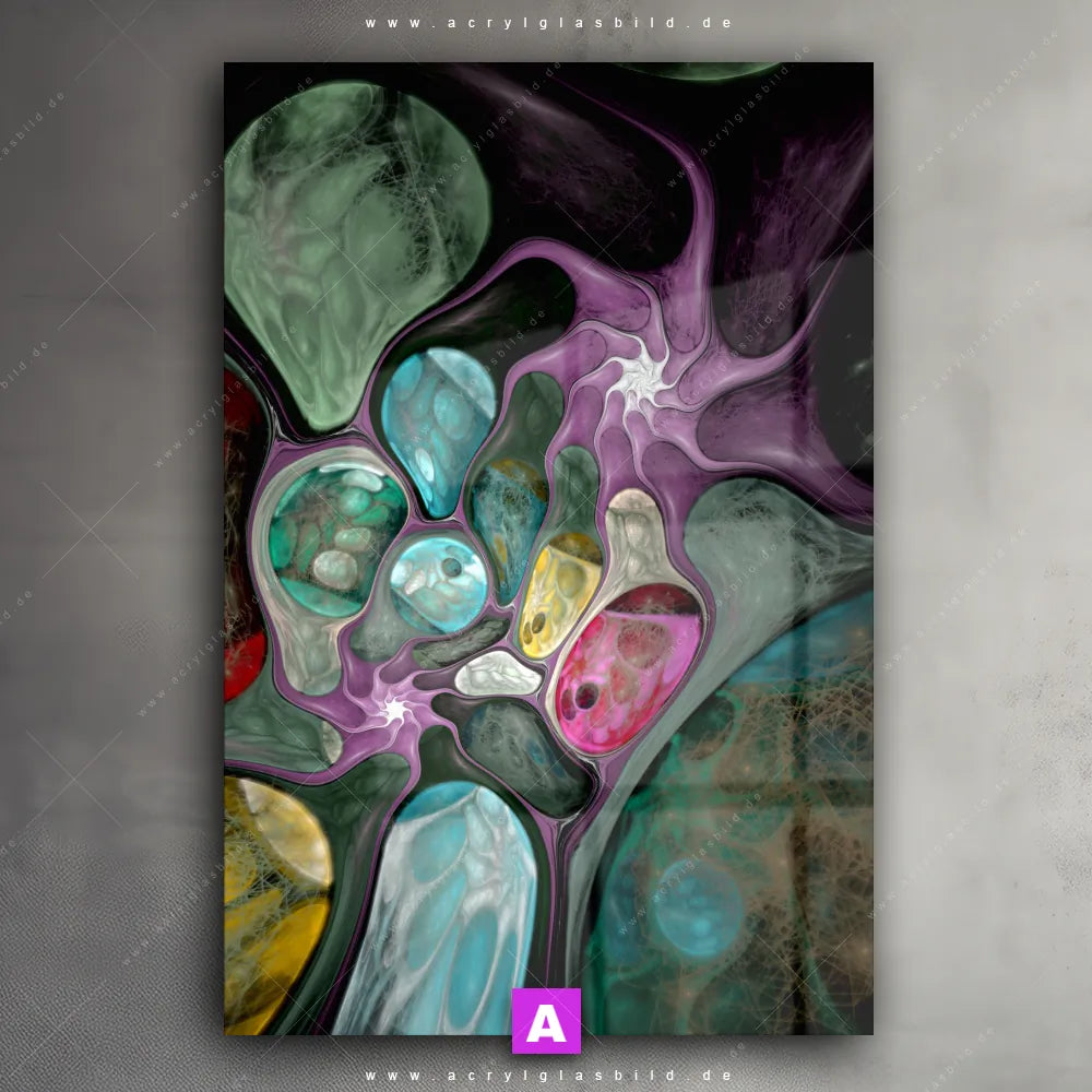 Hallo, auf Wiedersehen langweilige Wände! Gib deinem Raum ein stilvolles Upgrade mit unserem Acrylglasbild Abstrakte Bunte Blasen im Hochformat, das nicht nur Arzt - Praxis, Büro - Kanzlei, Wohnzimmer - Schlafzimmer, Bar - Gastronomie, Friseur - Beauty, sondern auch jeden anderen Raum im Handumdrehen auf ein neues Niveau hebt!