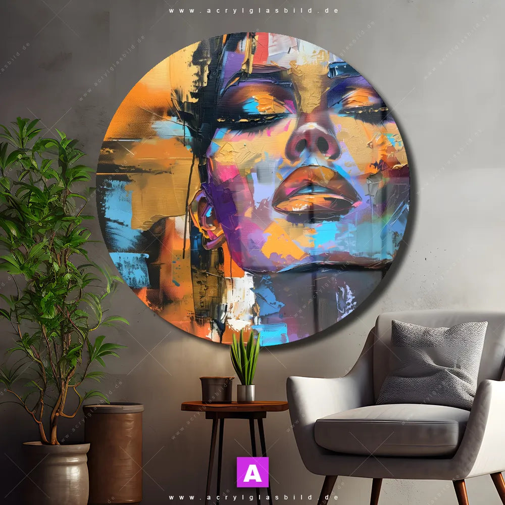 Hey du! Bist du es auch leid, auf langweilige, weiße Wände in deinem Raum zu starren und dich zu fragen, ob das der Sinn des Lebens ist? Unser Acrylglasbild mit dem Titel Abstraktes Frauenporträt Dilara im Format Rund verwandelt deine Wand in ein Kunstwerk und macht deinen Raum zum absoluten Hingucker.