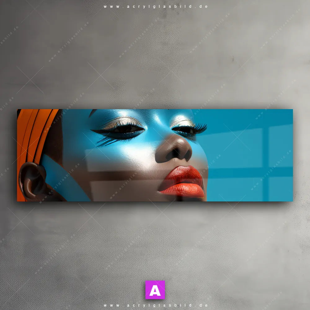 <b>Produktart:</b> Acrylglasbild | Glasbild | Wandbild aus Kunstglas | <b> Motiv:</b> Afrikanische Frau mit Turban | <b> Bildausrichtung:</b> Panorama | <b> Max. Motiv-Größe:</b> 300cm breit | 398cm hoch | <b> Verfügbare Formate: </b> Quadrat, Querformat, Hochformat, Panorama, Schmal, Rund | <b> Kategorie:</b> Porträts - Menschen | <b> Farben:</b> Blau, Braun, Rot, Orange | <b> Kunstformen:</b> KI-generiertes Bild, Digitale Kunst | <b> Kunststile:</b> Modern Art
