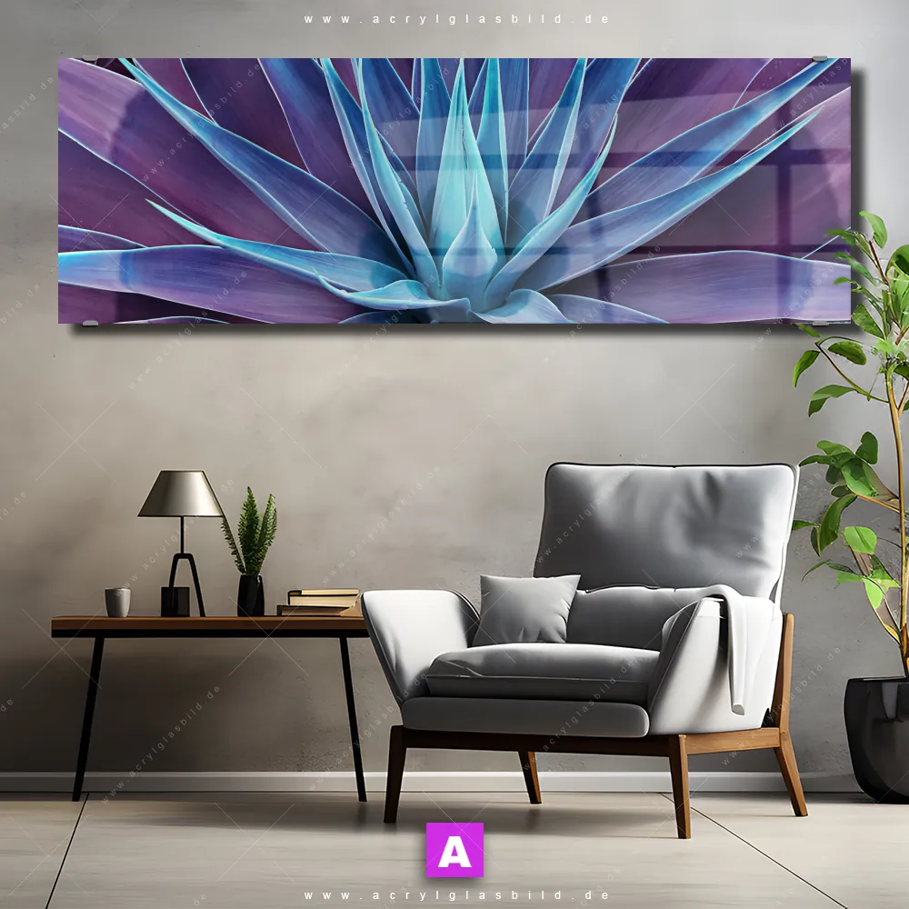 <b>Produktart:</b> Acrylglasbild | Glasbild | Wandbild aus Kunstglas | <b> Motiv:</b> Agavenblätter | <b> Bildausrichtung:</b> Panorama | <b> Max. Motiv-Größe:</b> 450cm breit | 300cm hoch | <b> Verfügbare Formate: </b> Quadrat, Querformat, Hochformat, Panorama, Schmal, Rund | <b> Kategorie:</b> Blumen - Botanik | <b> Farben:</b> Lila, Pink, Rosa, Mint | <b> Kunstformen:</b> Fotografie | <b> Kunststile:</b> Floral, Natürlich - Realistisch, Modern Art