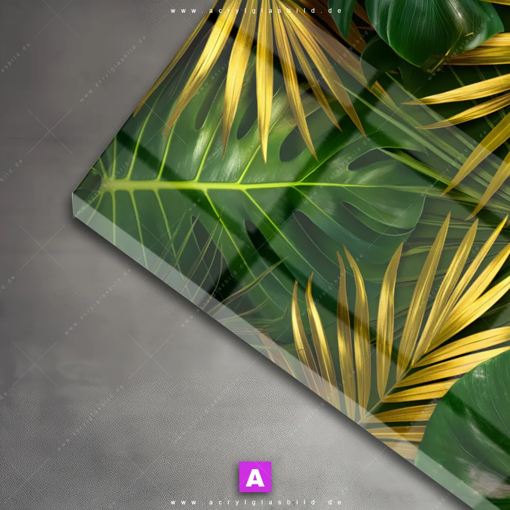 Also, worauf wartest du noch? Verwandle deine schlichten Wände in inspirierende Kunstwerke und bestelle jetzt das Acrylglasbild Grüne und Goldene Palmenblätter!