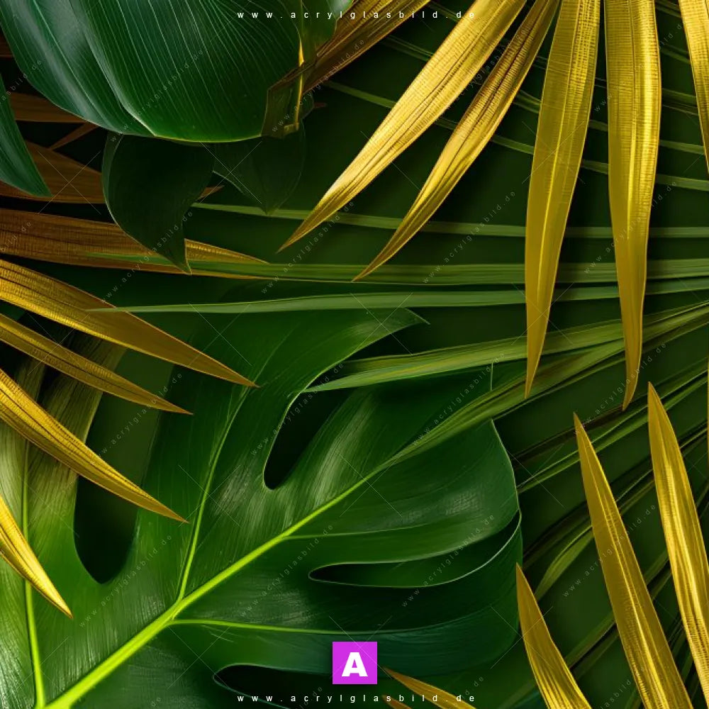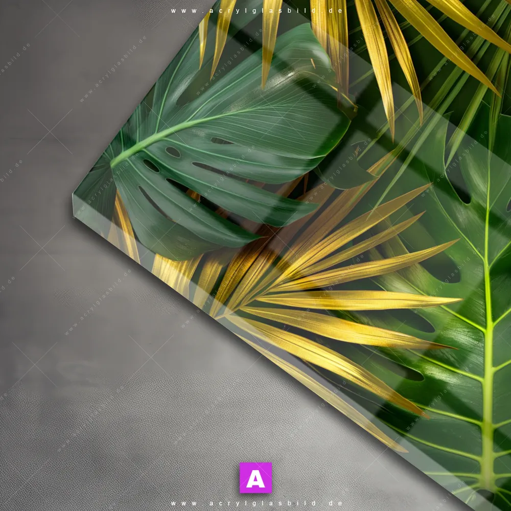 Also, worauf wartest du noch? Verleihe deinen Wänden das gewisse Etwas und bestelle jetzt das Acrylglasbild Grüne und Goldene Palmenblätter!