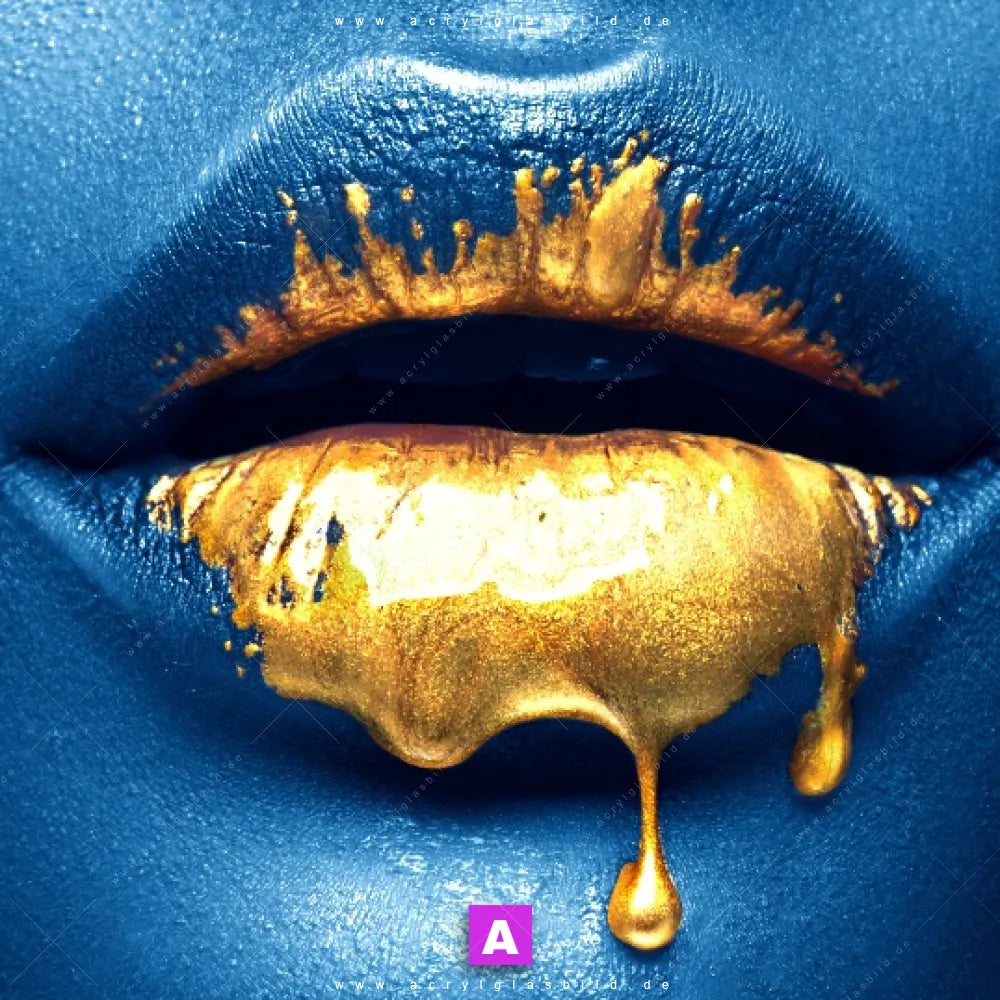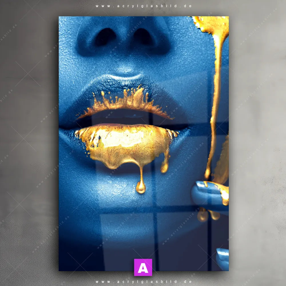 Wenn du auf der Suche nach einem Wandkunstwerk bist, das deine Sinne anregt und deine kreative Seite erweckt, dann ist unser Acrylglasbild Verführung in Blau-Gold aus der Kategorie Porträts - Menschen die perfekte Wahl für dich. Entscheide dich für das Acrylglasbild Goldtropfen im Gesicht in den faszinierenden Farben Gold, Blau, da es ideal zu deinem Einrichtungsstil im Modern Art-Look passt.