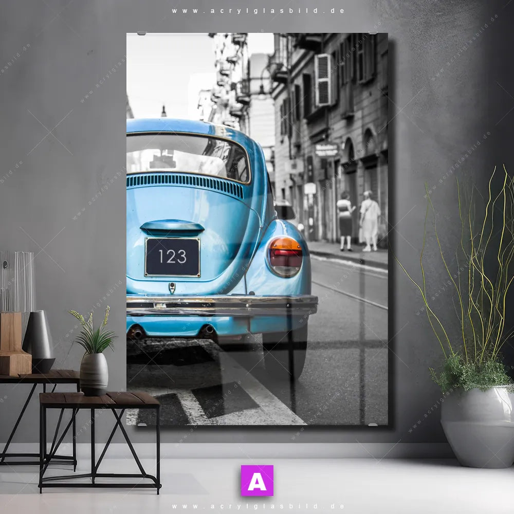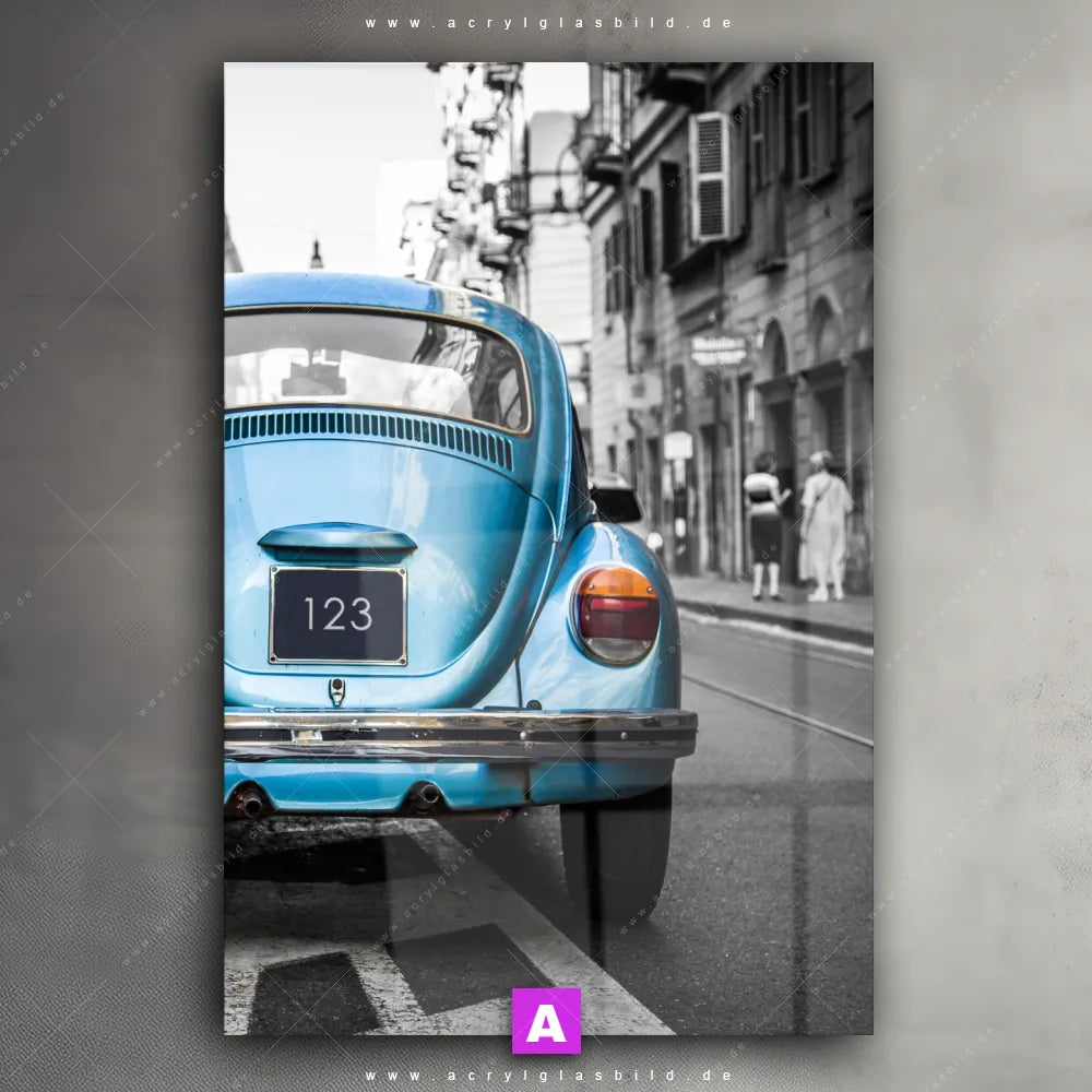 Hallo, auf Wiedersehen langweilige Wände! Gib deinem Raum ein stilvolles Upgrade mit unserem Acrylglasbild Blauer Oldtimer im Hochformat, das nicht nur Bar - Gastronomie, Büro - Kanzlei, Flur - Eingangsbereich, Wohnzimmer - Schlafzimmer, Arzt - Praxis, sondern auch jeden anderen Raum im Handumdrehen auf ein neues Niveau hebt!