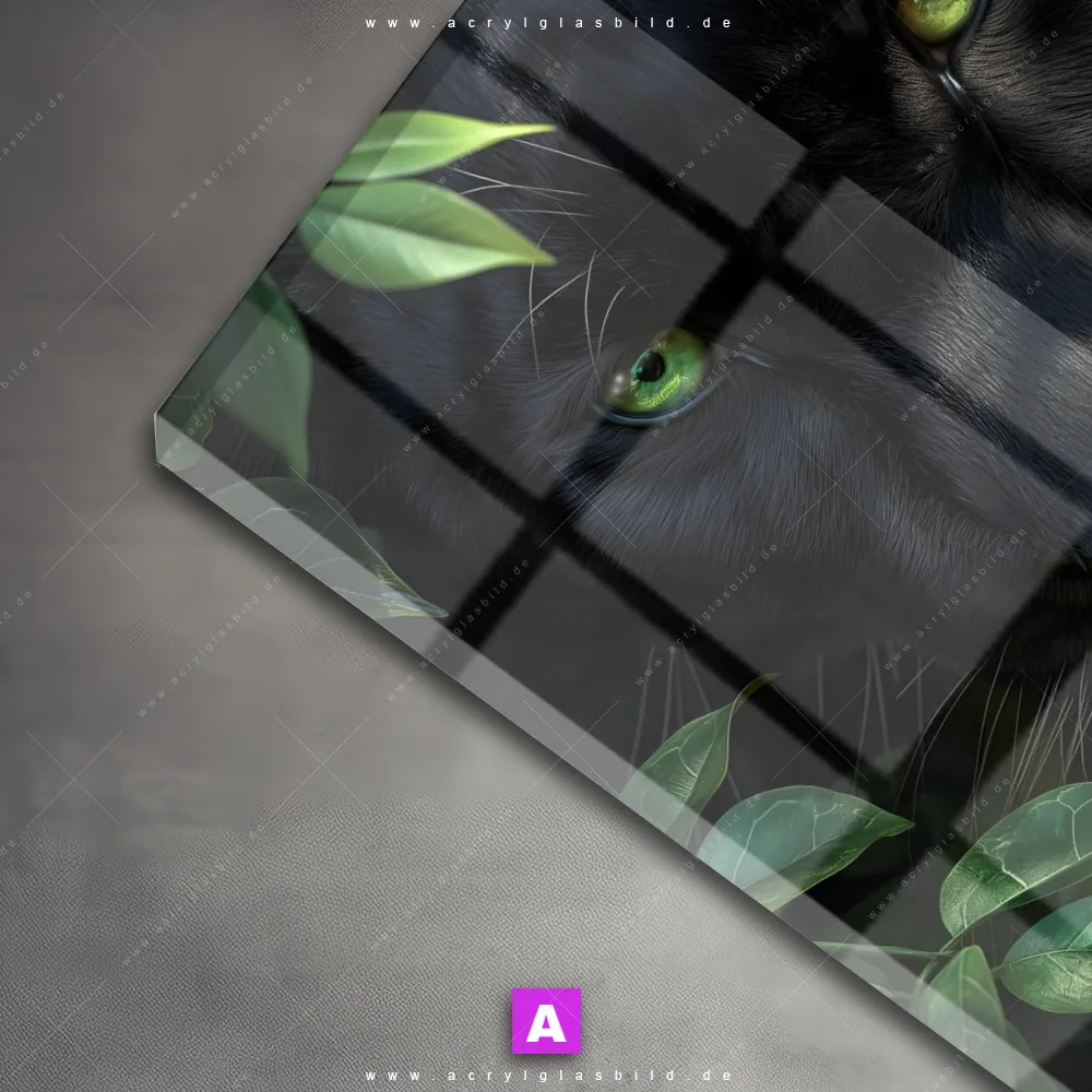 <b>Produktart:</b> Acrylglasbild | Glasbild | Wandbild aus Kunstglas | <b> Motiv:</b> Blick des Panthers | <b> Bildausrichtung:</b> Quadrat | <b> Max. Motiv-Größe:</b> 450cm breit | 300cm hoch | <b> Verfügbare Formate: </b> Quadrat, Querformat, Hochformat, Panorama, Schmal, Rund | <b> Kategorie:</b> Tierwelt, Blumen - Botanik | <b> Farben:</b> Schwarz, Grün | <b> Kunstformen:</b> Digitale Kunst | <b> Kunststile:</b> Modern Art, Floral