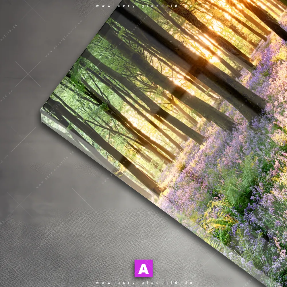 Das Acrylglasbild Sonnenaufgang im Wald ist ein absolutes Must-Have, wenn du nach einem Wandbild in der Kategorie Blumen - Botanik, Landschaften, Wald - Bäume suchst, das deine Persönlichkeit widerspiegelt. Die Farben in Lila, Hellgrün, Grün, Gold, Braun und die außergewöhnlichen Details wie Wald, Bäume, Blumen, Wiese, Sonnenaufgang, Sonne, Wandern, Frühling, Natur, Blüten machen das Acrylglasbild Die Morgenstunden im Blumenwald einzigartig und verleihen jedem Raum, sei es Wohnzimmer, Schlafzimmer oder sogar das Gäste-WC, den Wow-Faktor, den er verdient.