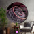 Das Motiv Blüten Spirale wird im UV-Direktdruck in den Farben Schwarz, Rot, Lila auf die Rückseite einer 5mm starken, transparenten Acrylglasplatte gedruckt. Das durchscheinende Motiv Spirale in Blütenblätteroptik im Abstrakt, Modern Art, Floral Stil wird anschließend vollflächig mit einer weißen Schicht hinterlegt. Das Blumen - Botanik, Muster - Texturen Acrylglasbild | Rund erhält so eine bemerkenswerte Farbbrillanz, hohe Schärfe und erstaunliche Tiefenwirkung.