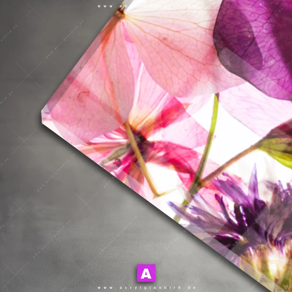 Vergiss also langweilige weiße Wände und entscheide dich für das Acrylglasbild Blumen in Gelb-, Rosa- und Lilatönen, gestaltet als Fotografie, das deinem Raum Charakter verleiht und dich jeden Tag aufs Neue inspiriert. Mit diesem Blumen - Botanik Acrylglasbild wird deine Wand zur Kunst und du zum Kunstliebhaber.