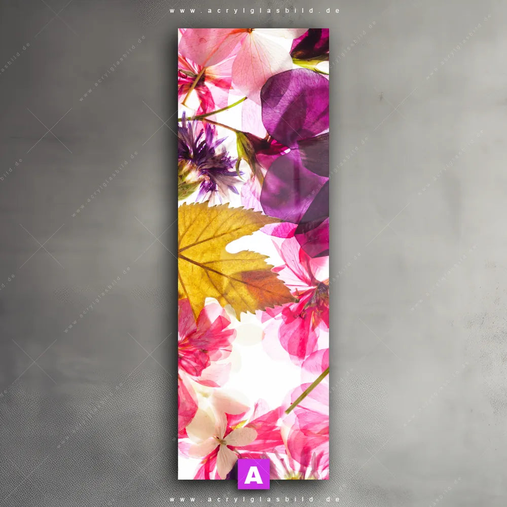 <b>Produktart:</b> Acrylglasbild | Glasbild | Wandbild aus Kunstglas | <b> Motiv:</b> Blumen Collage No.2 | <b> Bildausrichtung:</b> Schmal | <b> Max. Motiv-Größe:</b> 300cm breit | 449cm hoch | <b> Verfügbare Formate: </b> Quadrat, Querformat, Hochformat, Panorama, Schmal, Rund | <b> Kategorie:</b> Blumen - Botanik | <b> Farben:</b> Beige, Braun, Orange, Ocker, Lila | <b> Kunstformen:</b> Fotografie | <b> Kunststile:</b> Floral, Natürlich - Realistisch, Mixed Media