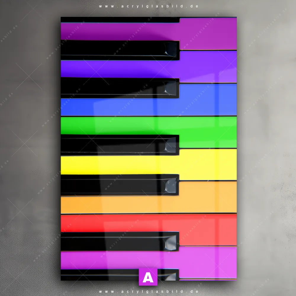 Hallo, auf Wiedersehen langweilige Wände! Gib deinem Raum ein stilvolles Upgrade mit unserem Acrylglasbild Bunte Klaviertasten im Hochformat, das nicht nur Wohnzimmer - Schlafzimmer, Kinderzimmer, Bar - Gastronomie, sondern auch jeden anderen Raum im Handumdrehen auf ein neues Niveau hebt!