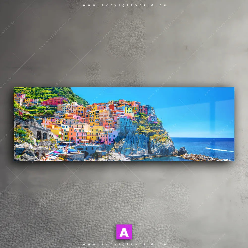 <b>Produktart:</b> Acrylglasbild | Glasbild | Wandbild aus Kunstglas | <b> Motiv:</b> Buntes Dorf Manarola | <b> Bildausrichtung:</b> Panorama | <b> Max. Motiv-Größe:</b> 450cm breit | 300cm hoch | <b> Verfügbare Formate: </b> Quadrat, Querformat, Hochformat, Panorama, Schmal, Rund | <b> Kategorie:</b>  Städte - Skylines | <b> Farben:</b>  Bunt, Blau | <b> Kunstformen:</b>  Fotografie | <b> Kunststile:</b>  Natürlich - Realistisch