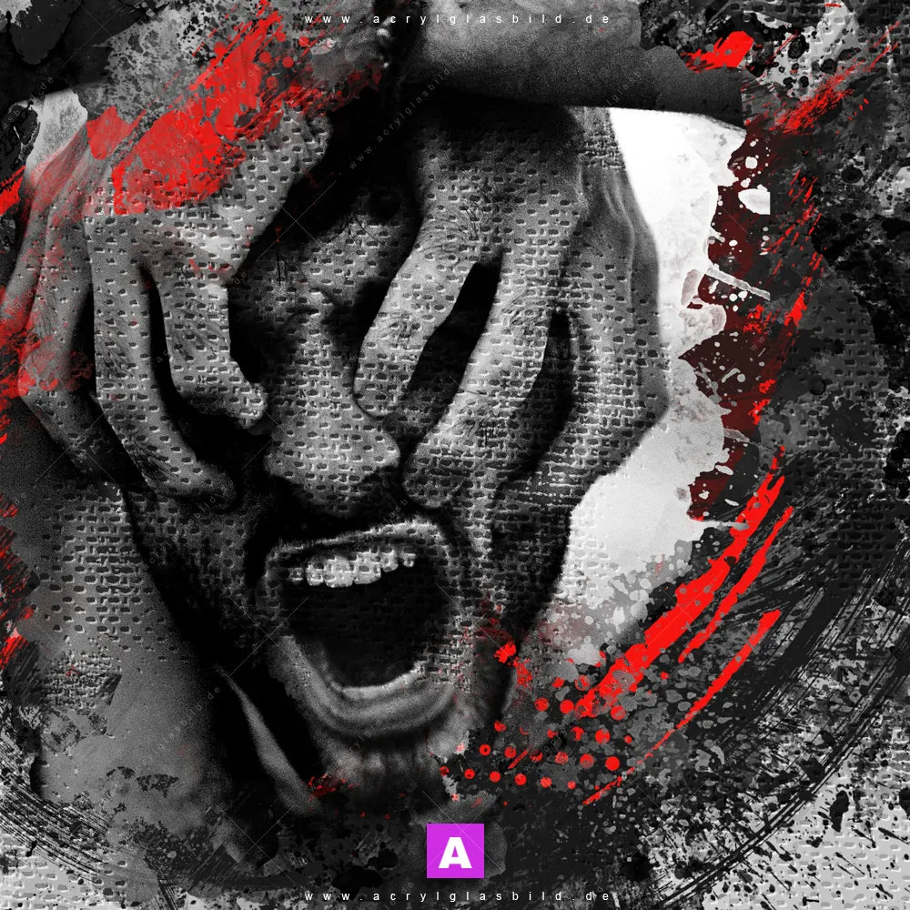 <b>Produktart:</b> Acrylglasbild | Glasbild | Wandbild aus Kunstglas | <b> Motiv:</b> Der Schrei - Grunge-Stil | <b> Bildausrichtung:</b> Rund | <b> Max. Motiv-Größe:</b> 180cm breit | 180cm hoch | <b> Verfügbare Formate: </b> Quadrat, Querformat, Hochformat, Panorama, Schmal, Rund | <b> Kategorie:</b> Porträts - Menschen | <b> Farben:</b> Weiss, Schwarz, Rot | <b> Kunstformen:</b> Digitale Kunst | <b> Kunststile:</b> Grunge, Mixed Media, Modern Art, Schwarz - Weiss
