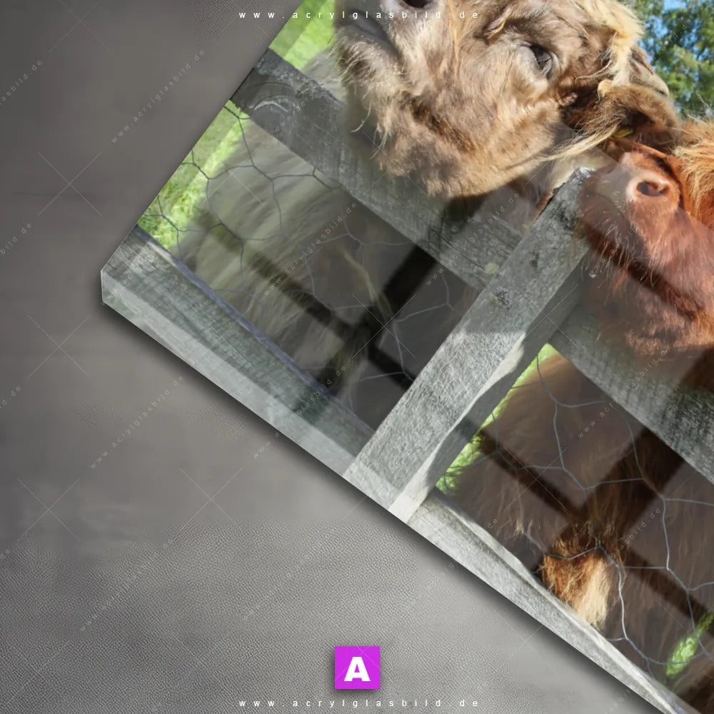 Unser Acrylglasbild Schottland-Rinder aus der Kategorie Tierwelt wird deinem Raum einen Hauch von Luxus verleihen, und du wirst nie wieder von Langeweile geplagt sein. Und wenn du nach einem Bild mit Tier, Stier, Hochlandkuh, Highlander, Büffel, Rind, Bulle, Hochlandrind, Kuh, Weide, Weidezaun suchst, empfehlen wir dir unser Acrylglasbild Rinder schauen über Zaun in den aufregenden Farben Schwarz, Weiss. Mit seiner Gestaltung als Fotografie passt es hervorragend zum Modern Art, Natürlich - Realistisch, Schwarz - Weiss-Stil.