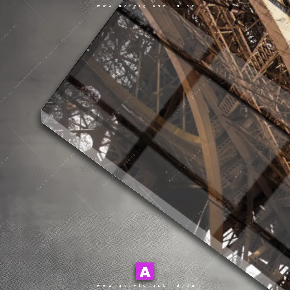 Das Motiv Eifelturm Shabby Stil wird im UV-Direktdruck in den Farben Braun, Beige auf die Rückseite einer 5mm starken, transparenten Acrylglasplatte gedruckt. Das durchscheinende Motiv Eiffelturm Blick von unten im Mixed Media Stil wird anschließend vollflächig mit einer weißen Schicht hinterlegt. Das Architektur - Gebäude Acrylglasbild | Panorama erhält so eine bemerkenswerte Farbbrillanz, hohe Schärfe und erstaunliche Tiefenwirkung.