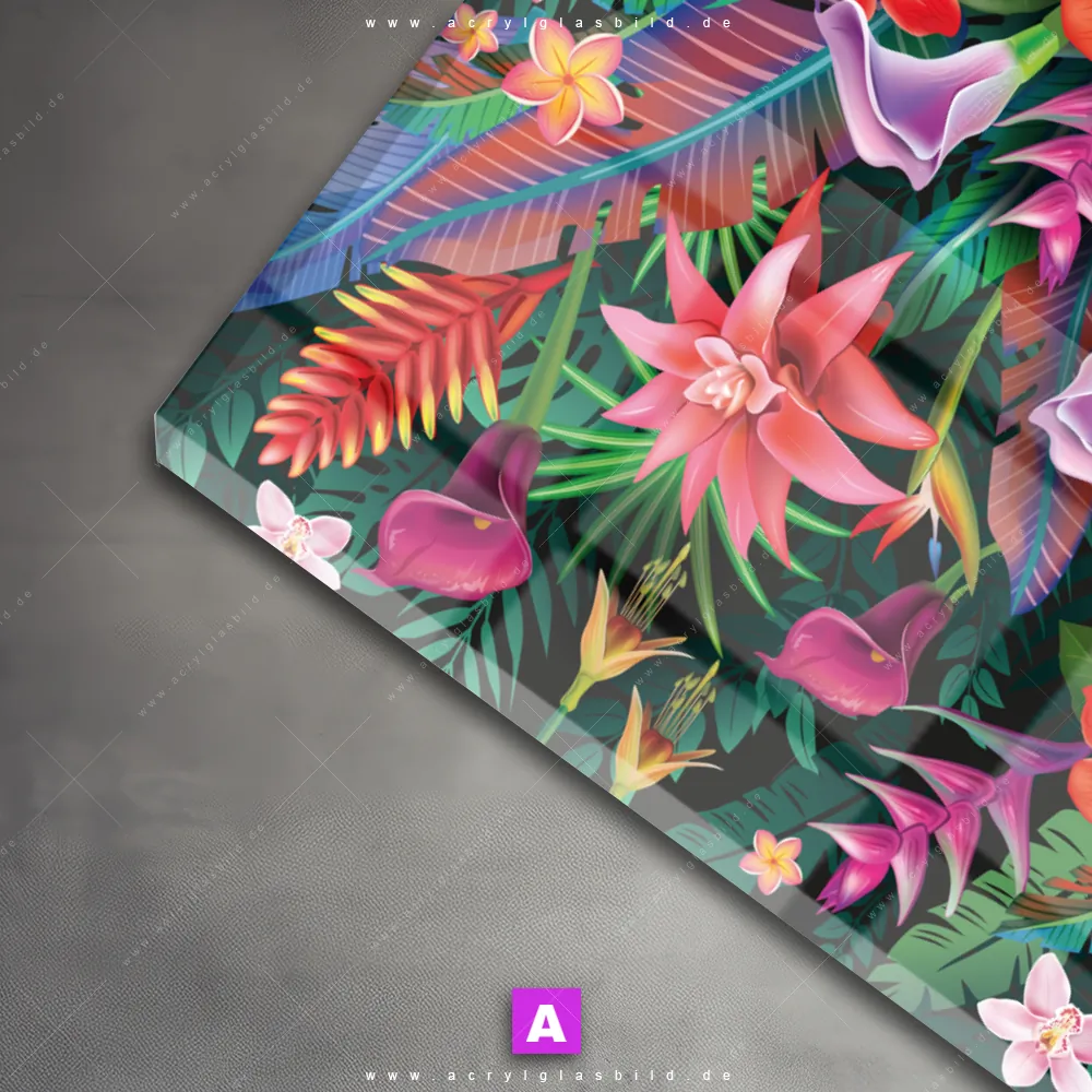 Wenn du auf der Suche nach einem Wandkunstwerk bist, das deine Sinne anregt und deine kreative Seite erweckt, dann ist unser Acrylglasbild Exotische Dschungelpflanzen aus der Kategorie Blumen - Botanik die perfekte Wahl für dich. Entscheide dich für das Acrylglasbild Exotische Bläter & Blüten in den faszinierenden Farben Grün, Rot, Gelb , Blau, da es ideal zu deinem Einrichtungsstil im Floral, Modern Art-Look passt.